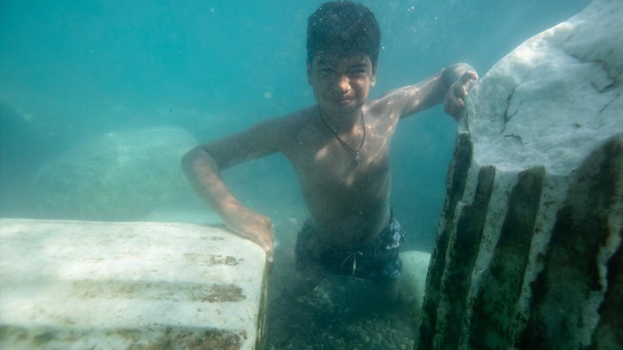 Misafirlerine pamuk beyazı travertenlerin üzerinde yürüme, antik çağı günümüze taşıyan eserleri görme imkanı tanıyan Pamukkale`de, 2 bin 800 yıllık olduğu değerlendirilen antik termal havuz da ziyaretçilere tarihi sütunların içinde yüzme deneyimi sunuyor.