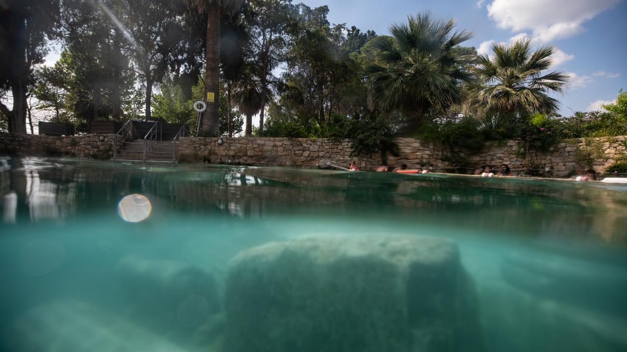 Pamukkale'deki antik termal havuz, havalar bunaltsa da boş kalmıyor
