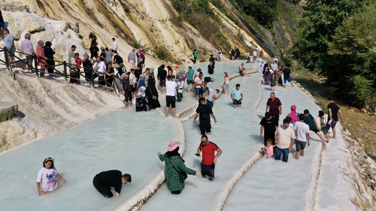 Sakarya`dan gelen Vildan Salman ise travertenleri görünce çok şaşırdığını dile getirerek, "Görünce şoka girdim, adeta küçük bir Pamukkale, çok güzel, çok beğendim, herkese tavsiye ederim. `Suyunda şifa var mıdır` diye merak da ettim. Bir kısmı sıcak ılık, bir kısmı da soğuk, dağlardan geliyor sanırım, ayağınız bir üşüyor, bir ısınıyor, çok güzel" ifadelerini kullandı.