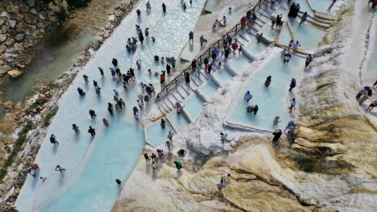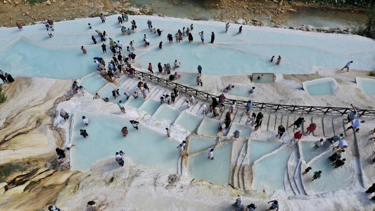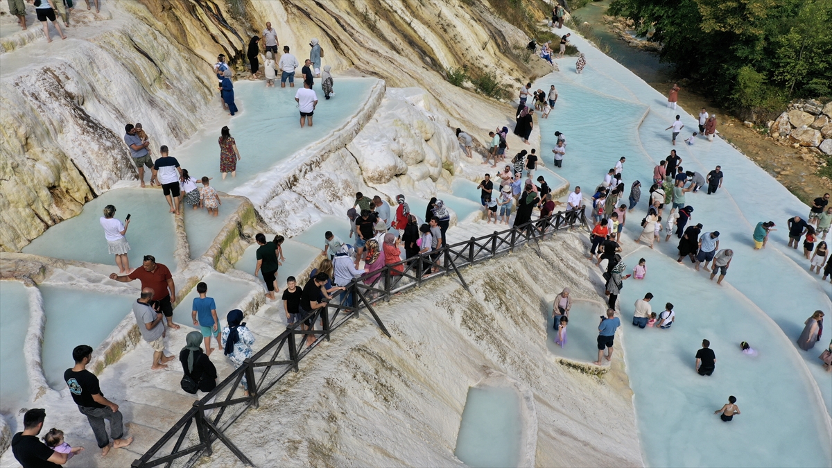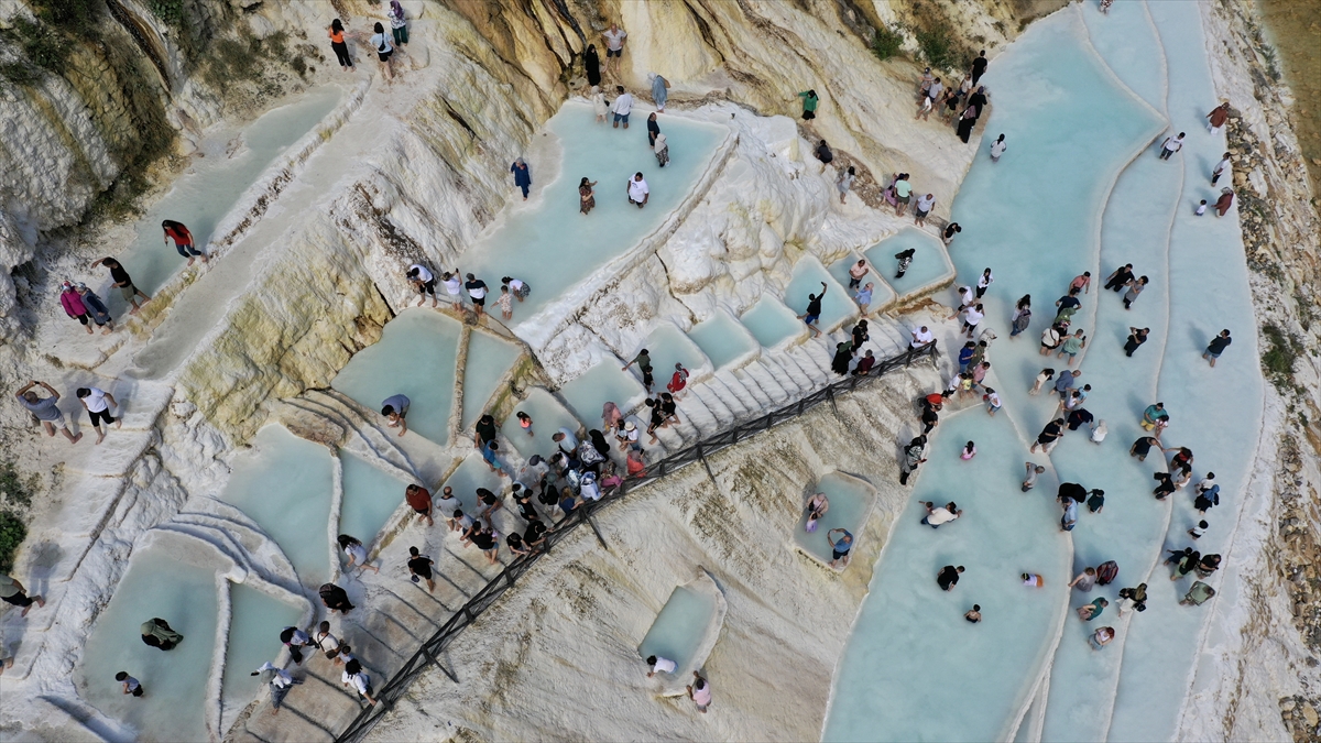Kahraman Bayraktar da travertenleri çok beğendiğini anlatarak, "Pamukkale`ye de gittim orada bu kadar kalabalığı görmemiştim. Sodalı su, sağlıklı bir su, yazın sıcağında insanlar serinlemek için geliyor. Daha da meşhur olacaktır" diye konuştu.