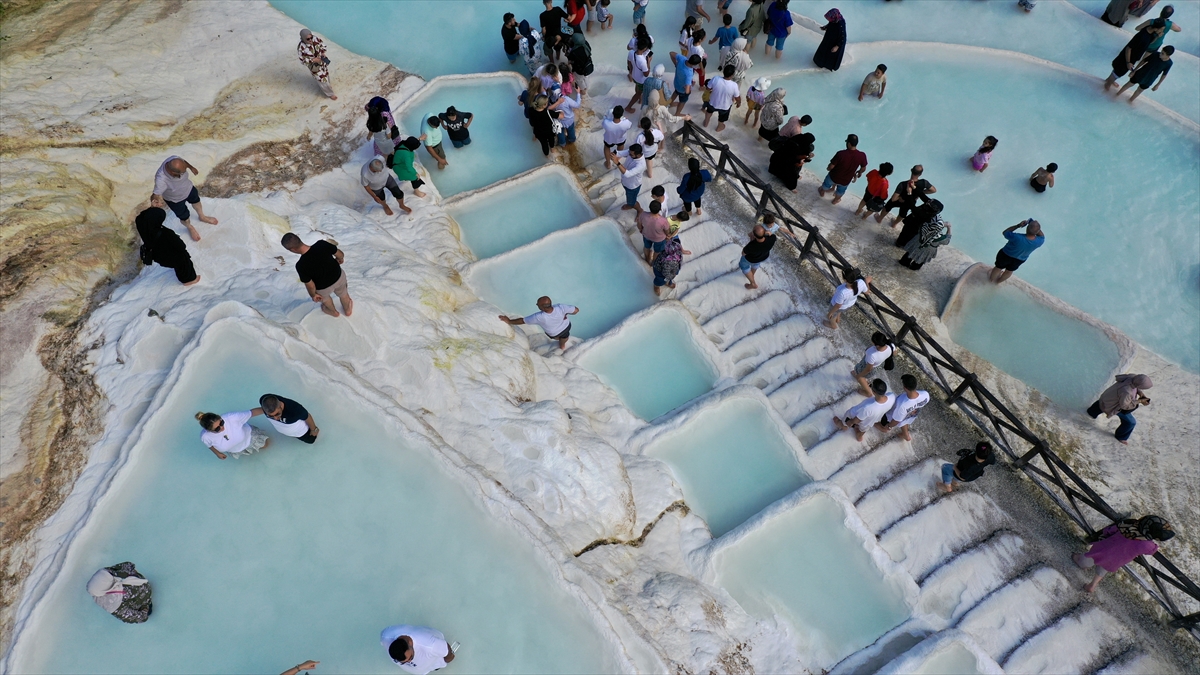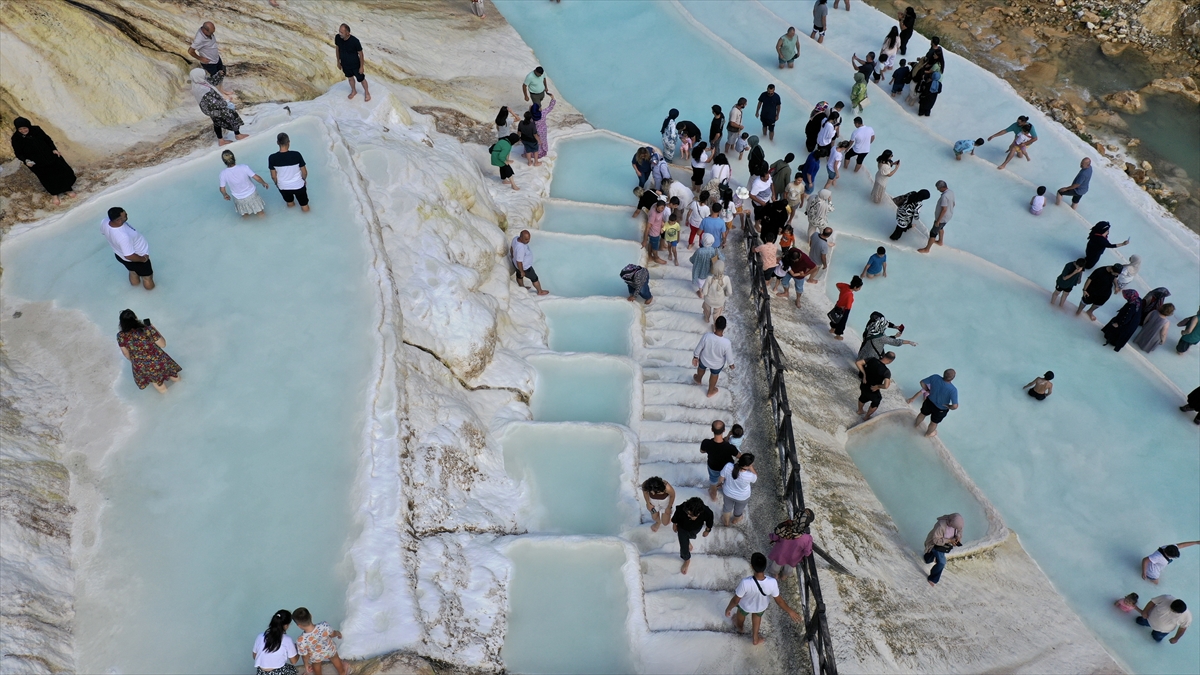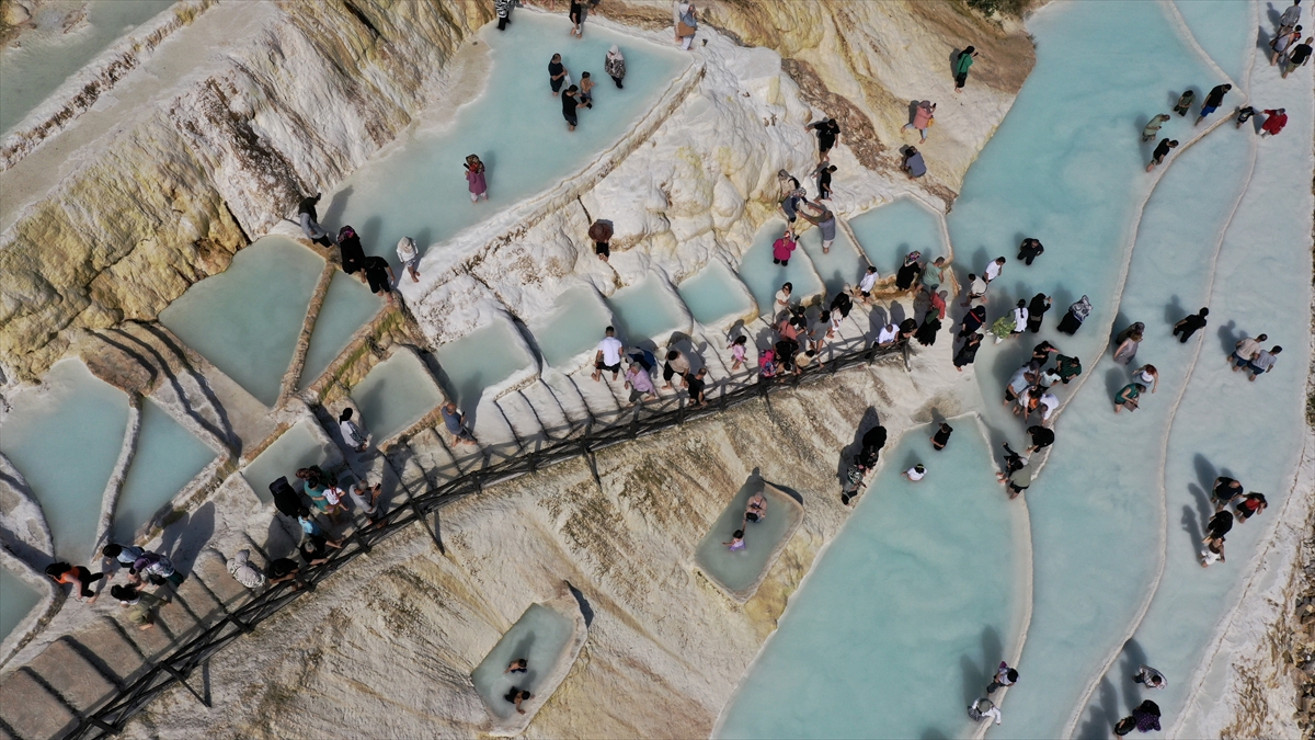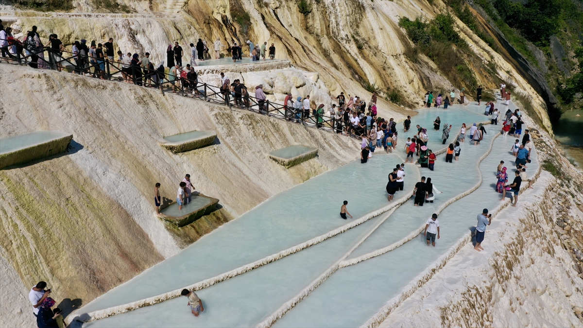 Kahraman Bayraktar da travertenleri çok beğendiğini anlatarak, "Pamukkale`ye de gittim orada bu kadar kalabalığı görmemiştim. Sodalı su, sağlıklı bir su, yazın sıcağında insanlar serinlemek için geliyor. Daha da meşhur olacaktır" diye konuştu.