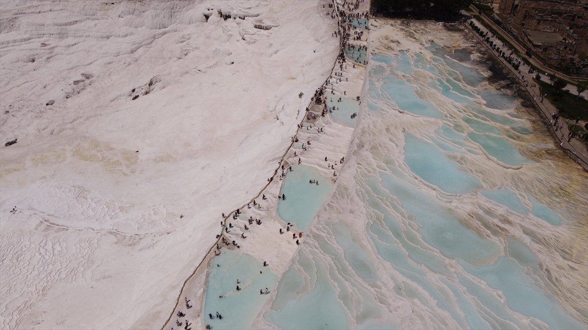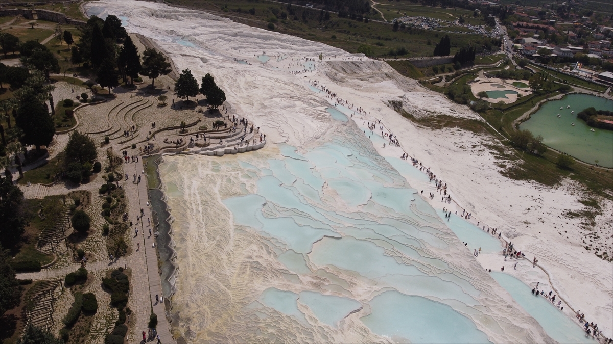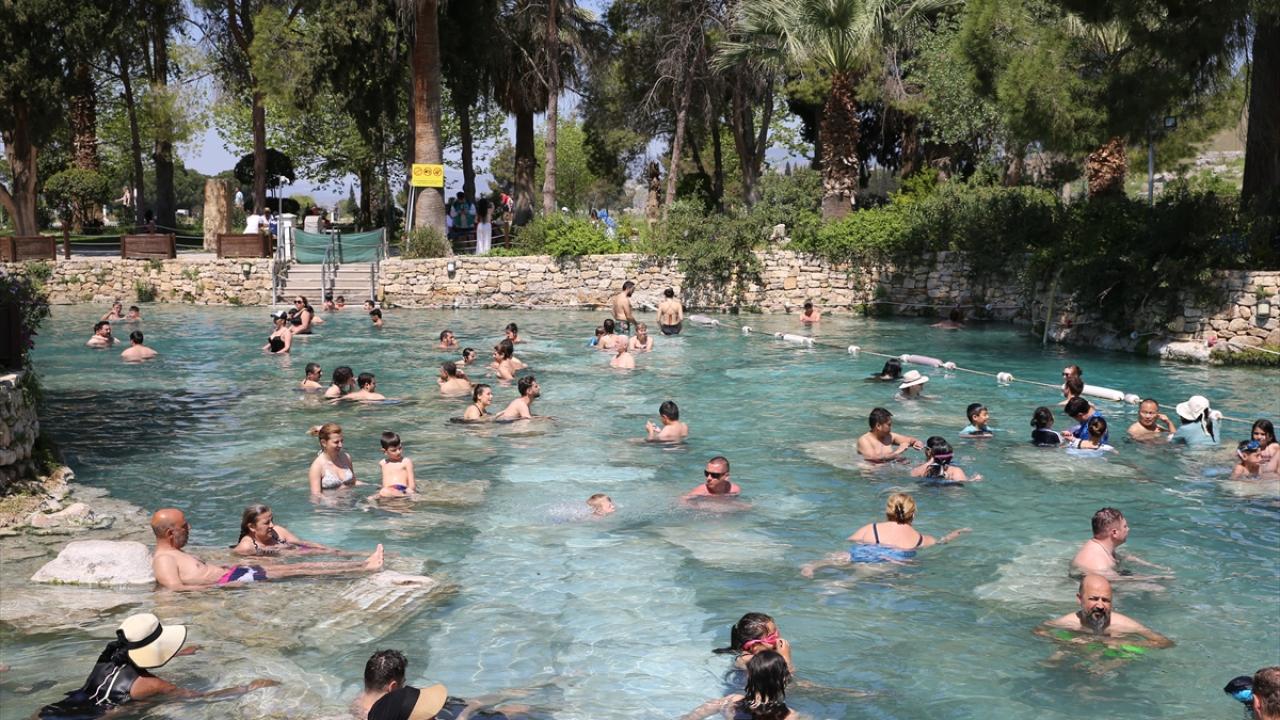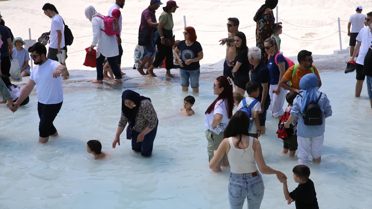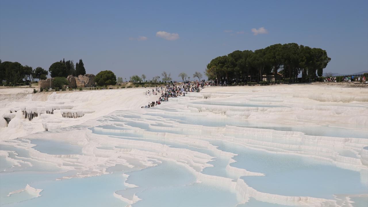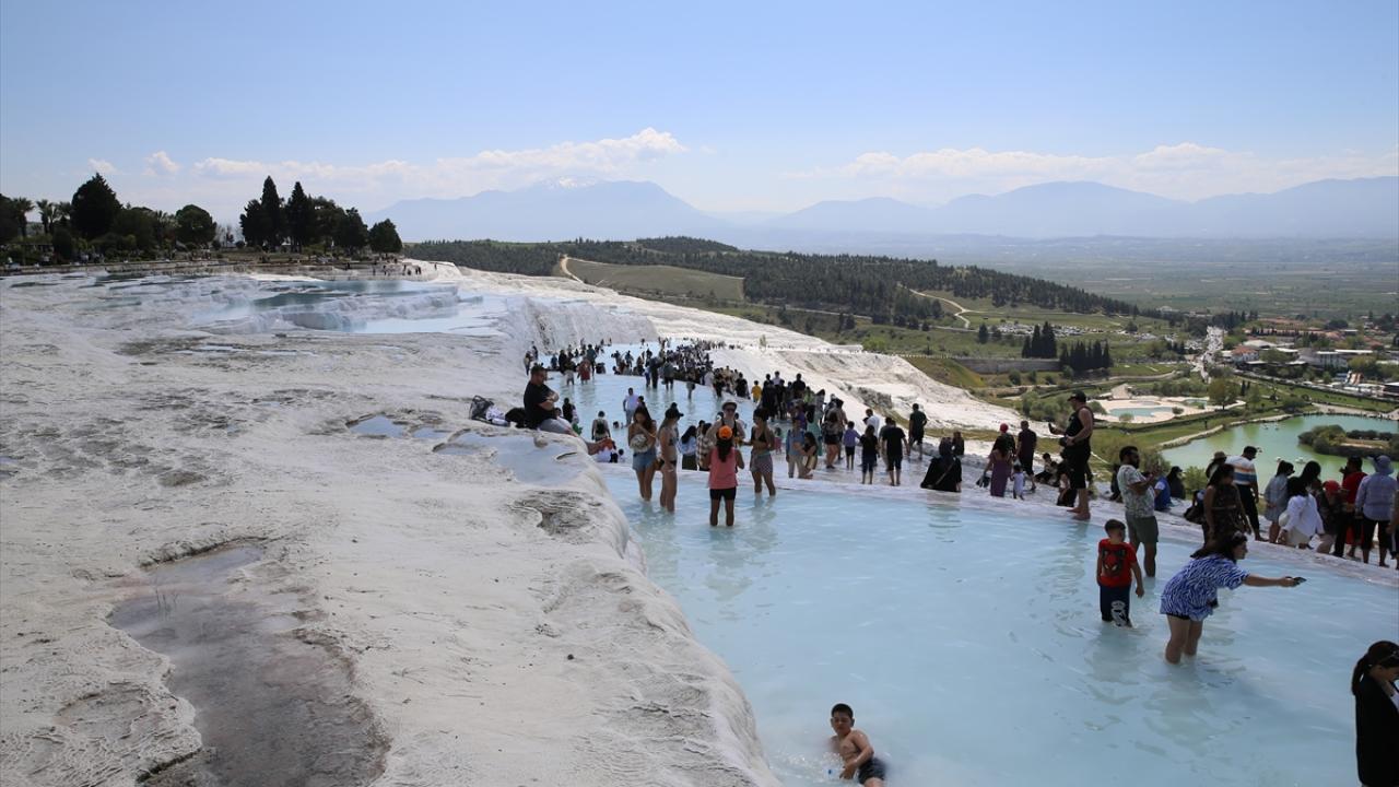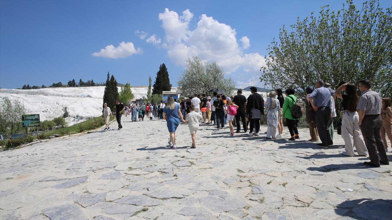 Ülkenin dikkati çeken turizm merkezleri arasında bulunan ve beyaz travertenleri, yaz kış 36 dereceyi bulan şifalı termal suyu, etrafındaki antik kentiyle dört mevsim turist çeken Pamukkale`de bayram tatili yoğunluğu yaşandı.