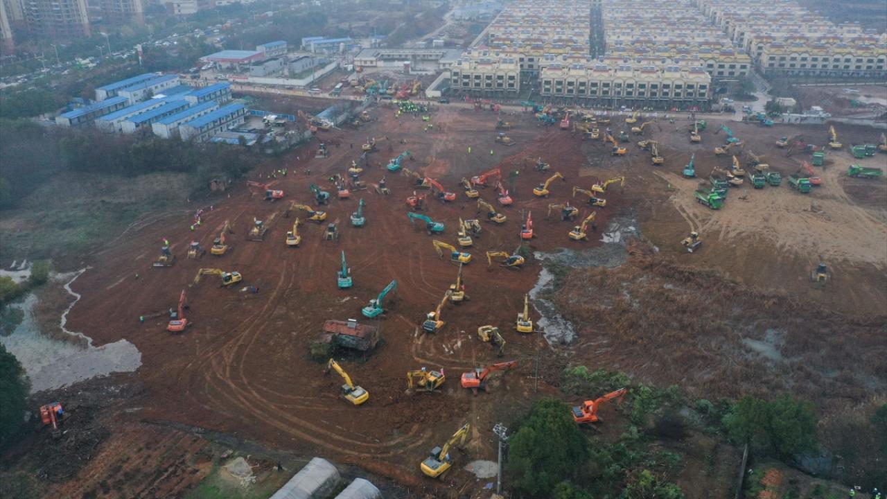 Çin`in Vuhan kentinde ihtiyaca binaen bin yataklı hastanenin inşasına başlandı. (Arşiv)