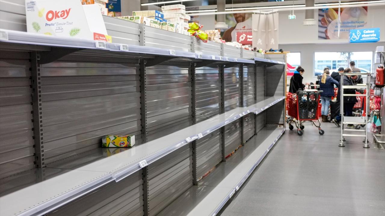 Fransa`nın başkenti Paris`te salgın nedeniyle paniğe kapılanlar, marketlerde gıda ve hijyen ürünlerine yoğun ilgi gösterdi. (Arşiv)