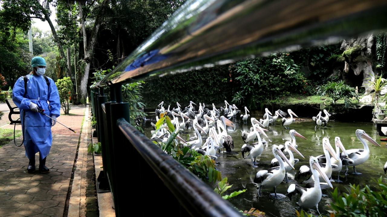 Endonezya`nın başkenti Cakarta`da yeni tip koronavirüs (Covid-19) salgınına karşı önlem olarak turistlerin yoğun olarak ziyaret ettiği mekanlardan olan Ragunan hayvanat bahçesi dezenfekte edildi. (Arşiv)