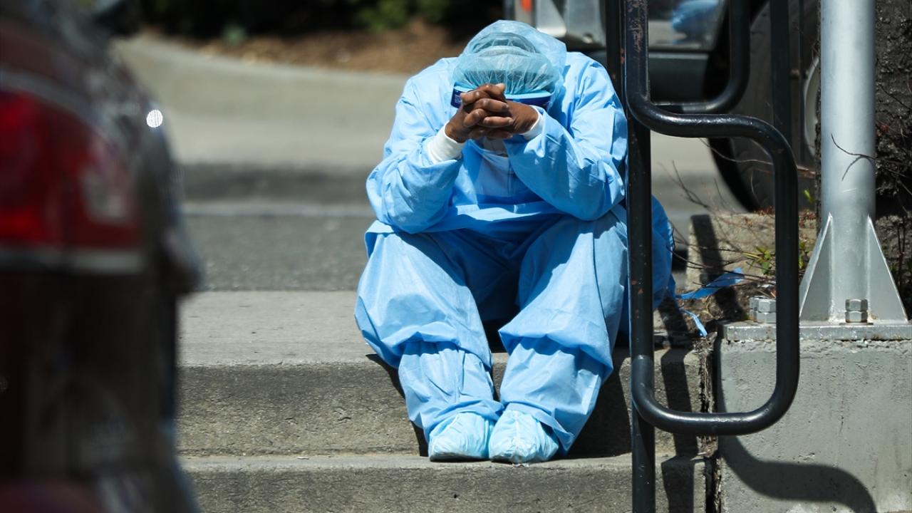 ABD`de yeni tip koronavirüs (Covid-19) salgınından en fazla etkilenen New York`ta, Brooklyn Hastanesi çıkışında bir doktorun yorgun olduğu gözlendi. (Arşiv)