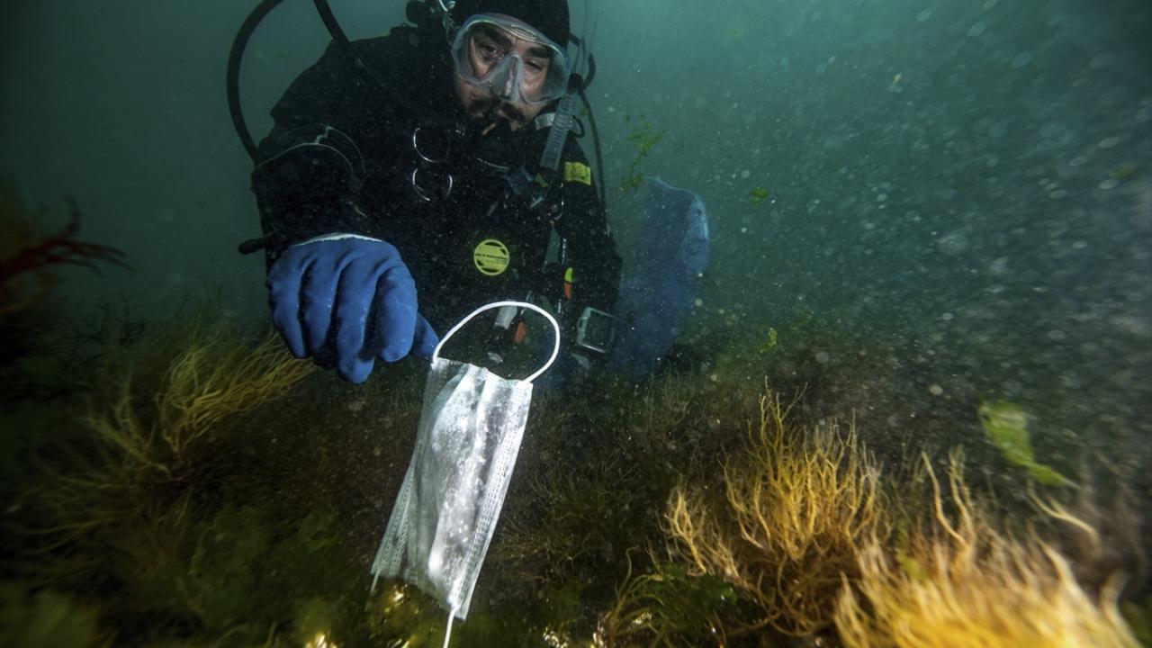 Beylikdüzü Sualtı Sporları Dünya Rekortmenleri Kulübü üyeleri, Beylikdüzü`ndeki Gürpınar Sahili`nde Çevre Haftası etkinlikleri kapsamında tüplü dalış yaparak deniz temizliği gerçekleştirdi. (Arşiv)