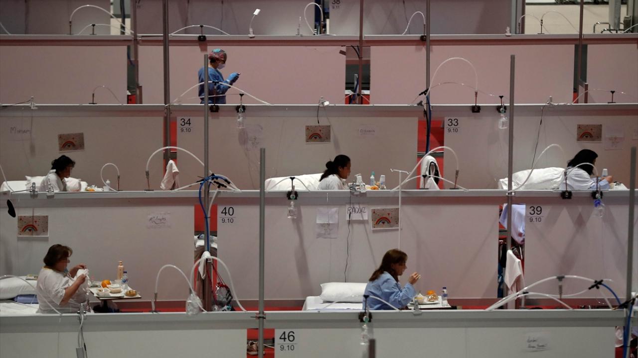 İspanya`nın en büyük fuar alanı olan ve normalde yılda 80`den fazla etkinliğe ev sahipliği yapan, 200 bin metrekarelik kapalı alana sahip Ifema`daki sahra hastanesinde vardiyalı olarak çalışan bin kadar doktor, hemşire ve diğer sağlık çalışanları 24 saat kesintisiz hizmet verdi. (Arşiv)