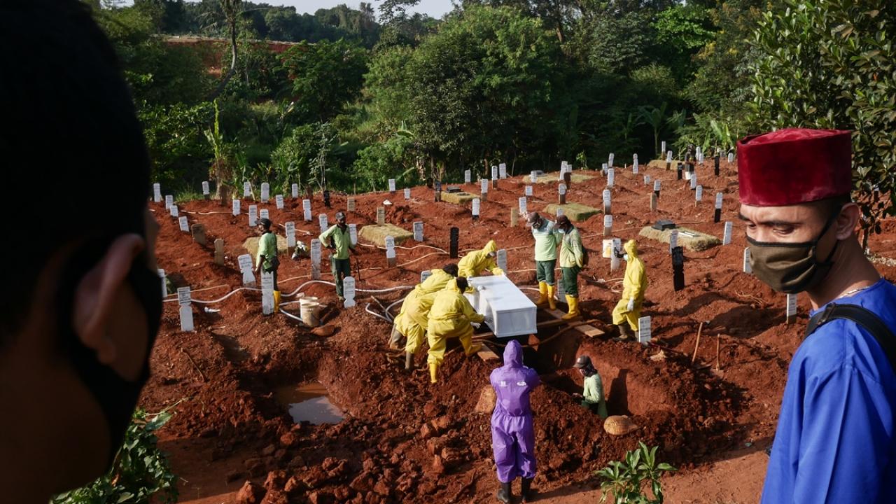 Endonezya`nın başkenti Cakarta`da yeni tip koronavirüs (Covid-19) salgını nedeniyle hayatını kaybedenlerin defnedildiği mezarlıkta neredeyse yer kalmadığı bildirildi. (Arşiv)