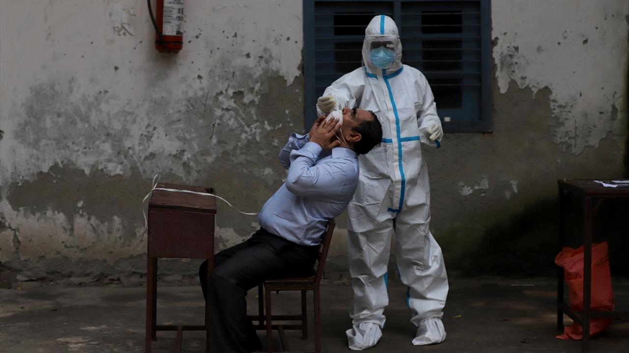 Hindistan`ın başkenti Yeni Delhi`de koruyucu kıyafetlerini giyen sağlık çalışanları vatandaşlara test yaptı. (Arşiv)