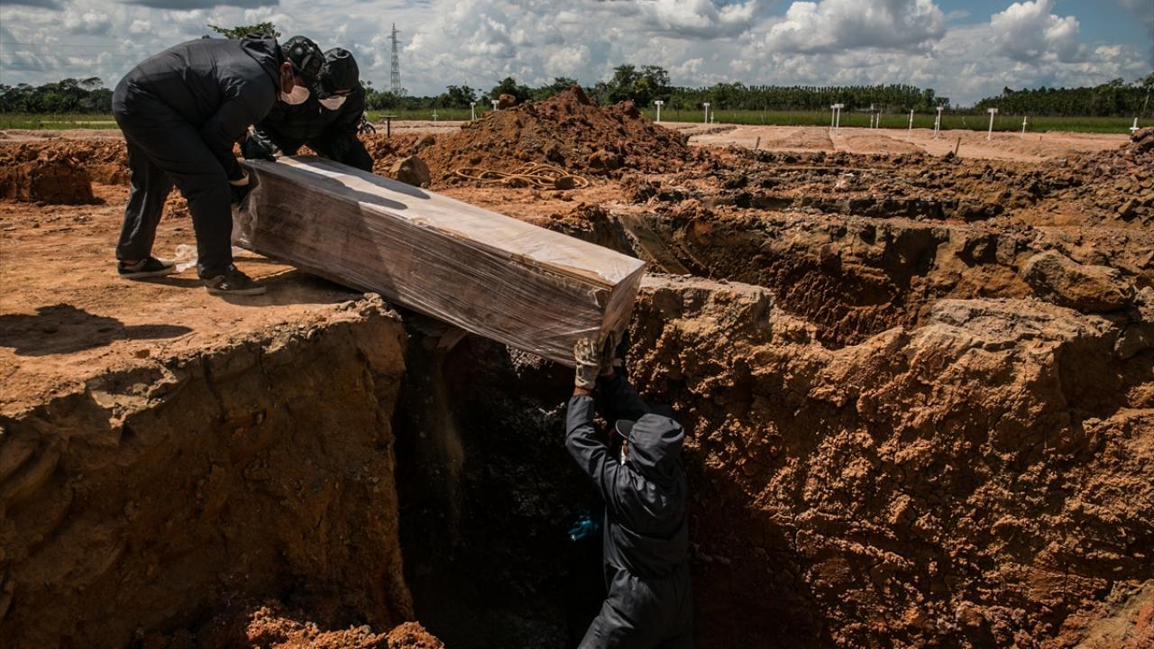 Brezilya`nın Rio de Janeiro kentindeki Babilonia bölgesinde yeni tip koronavirüs (Covid-19) nedeniyle hayatını kaybeden bir kişi, bölgedeki Caju mezarlığına defnedildi. (Arşiv)