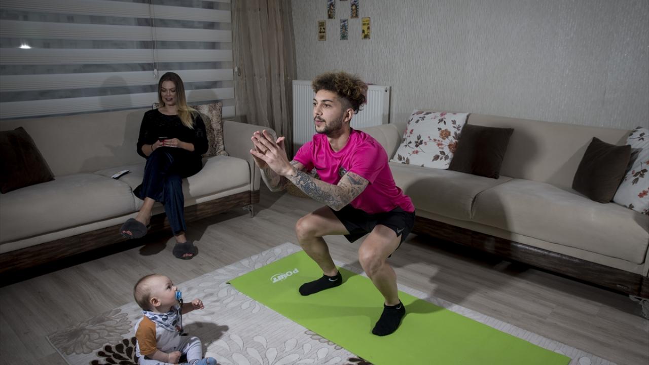 Salgınla mücadele kapsamında sahalardan uzak kalan 26 yaşındaki Osmanlıspor futbolcusu Beykan Şimşek, günlük antrenmanlarını kendi evinde gerçekleştirdi. (Arşiv)