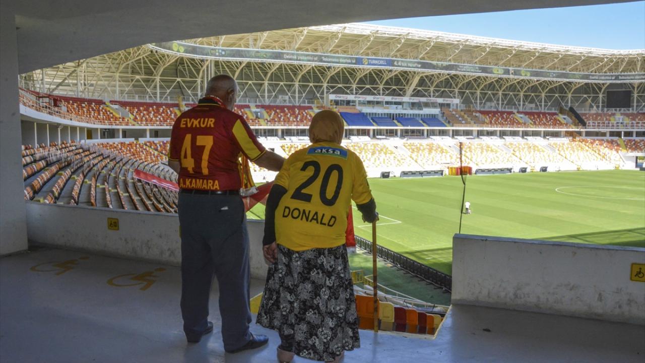Malatya`da ilerleyen yaşlarına rağmen takımlarını yalnız bırakmayan ve tribünden destek veren Fatma ile Orhan Mutlu çifti, yeni tip koronavirüs (Covid-19) tedbirleri kapsamında maçların seyircisiz oynanması nedeniyle stada gidememenin üzüntüsünü yaşadı. (Arşiv)