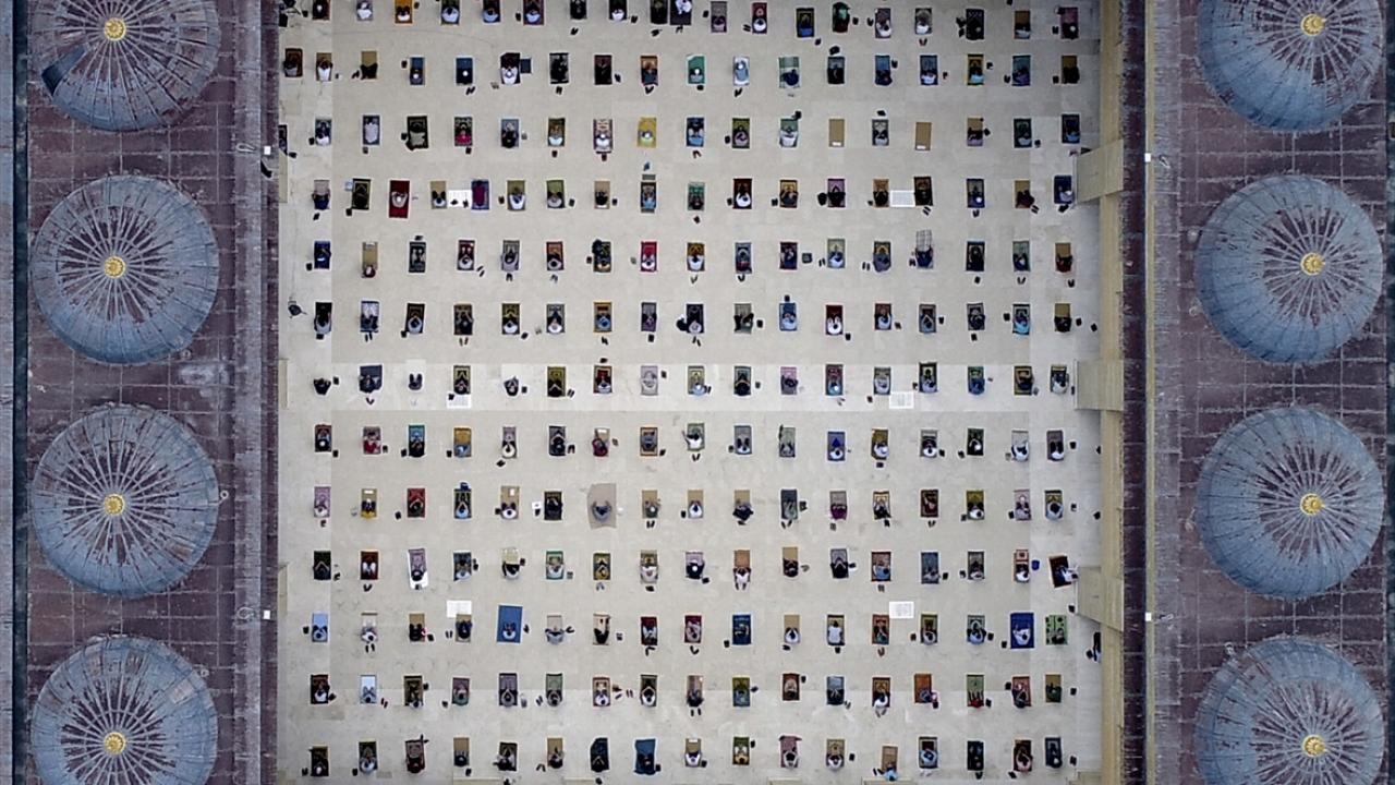 Yeni tip koronavirüs (Covid-19) tedbirleri kapsamında toplu ibadete ara verilmesinin ardından ilk cuma namazı, Antalya`nın Konyaaltı ilçesinde belirlenen Akdeniz Üniversitesi Camii avlusu ve dışında kılındı. (Arşiv)