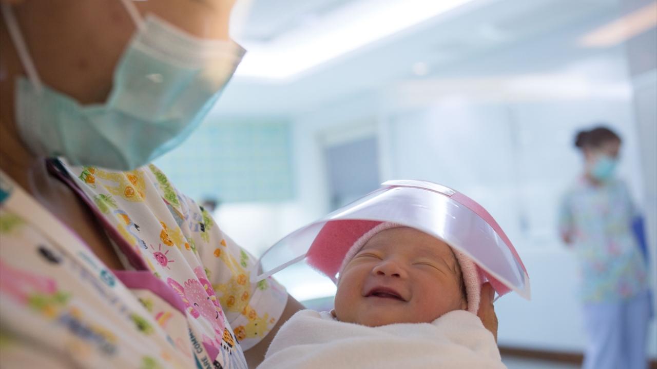 Tayland`ın başkenti Bangkok`taki bir hastanenin yeni doğan ünitesinde, yeni tip koronavirüsten korunmaları için bebeklere yüz siperliği takılarak önlem alındı. (Arşiv)