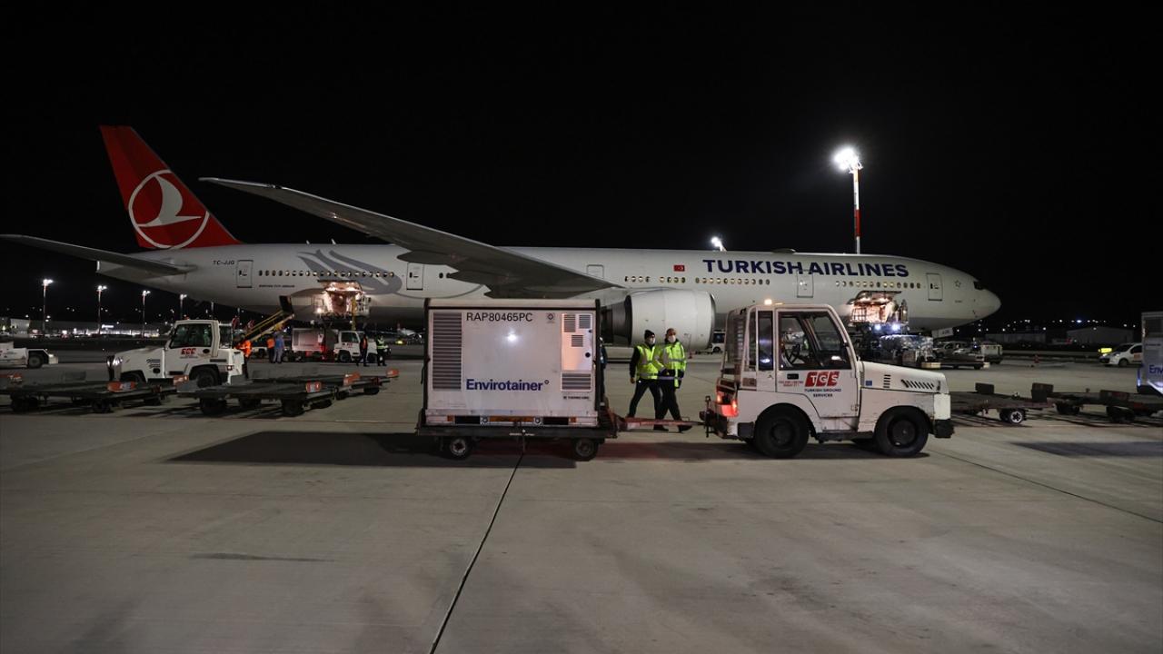 Çin`den sipariş edilen yeni tip koronavirüs (Covid-19) aşılarının ikinci partisinin bulunduğu THY`nin Pekin-İstanbul seferini yapan uçak, İstanbul Havalimanı`na geldi. Uçağın İstanbul`a inişiyle aşıların bulunduğu konteynerler, gümrük işlemlerinin ardından uçaktan alınarak depolara taşınmaya başlandı. (Arşiv)