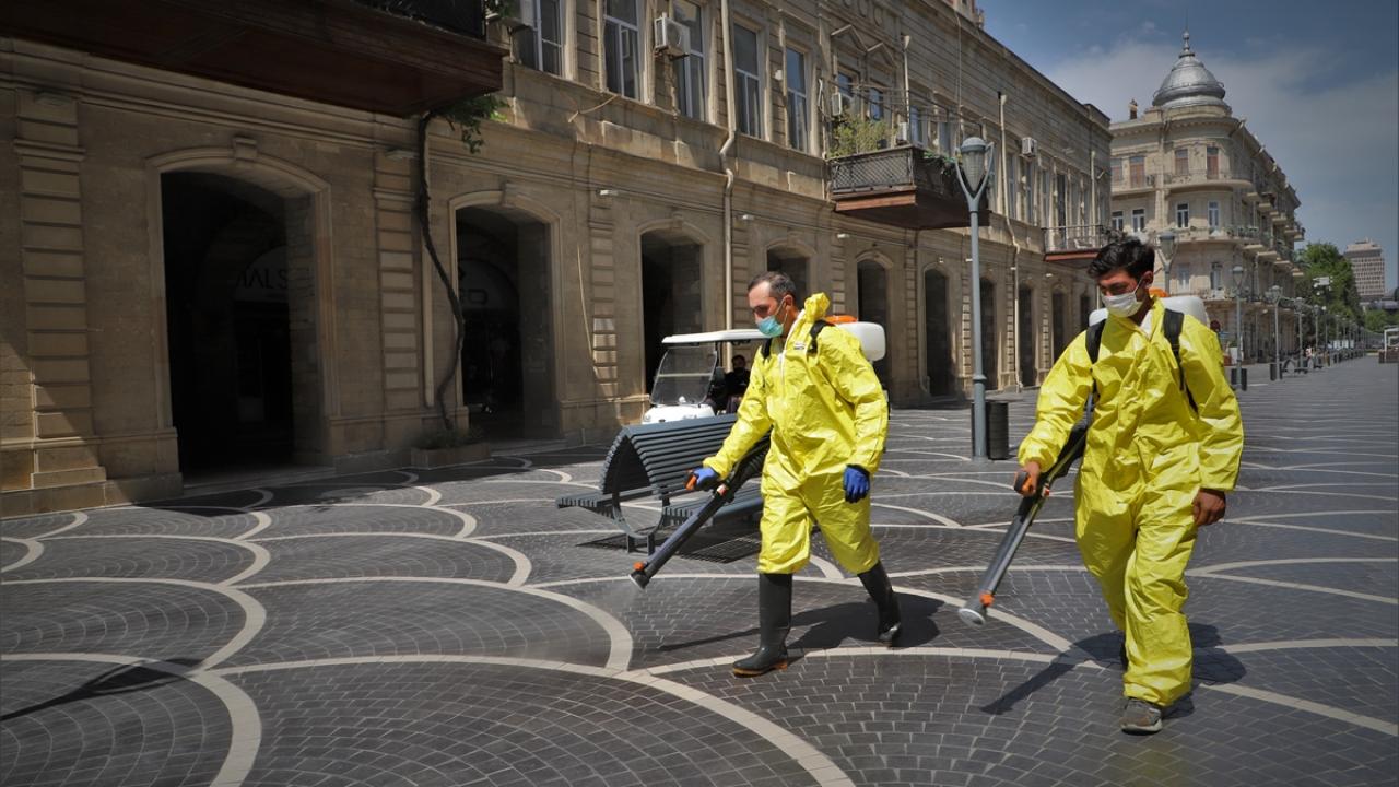 Azerbaycan`da, yeni tip koronavirüs (Covid-19) vakalarında yaşanan artış nedeniyle Bakü dahil 8 şehirde sokağa çıkışlarda SMS`le izin alma uygulaması yeniden devreye sokuldu. Bakü`de boşalan cadde ve sokaklar ekipler tarafından dezenfekte edildi. (Arşiv)