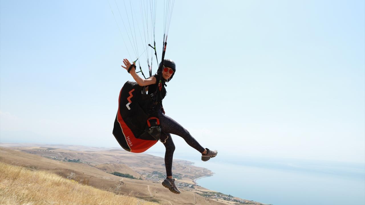 Van Gölü koylarında yamaç paraşütü yapan kadın sporcular, yaptıkları uçuşlarla Van`ın bundan sonra en önemli rotalarından biri olacağının mesajını verdi.