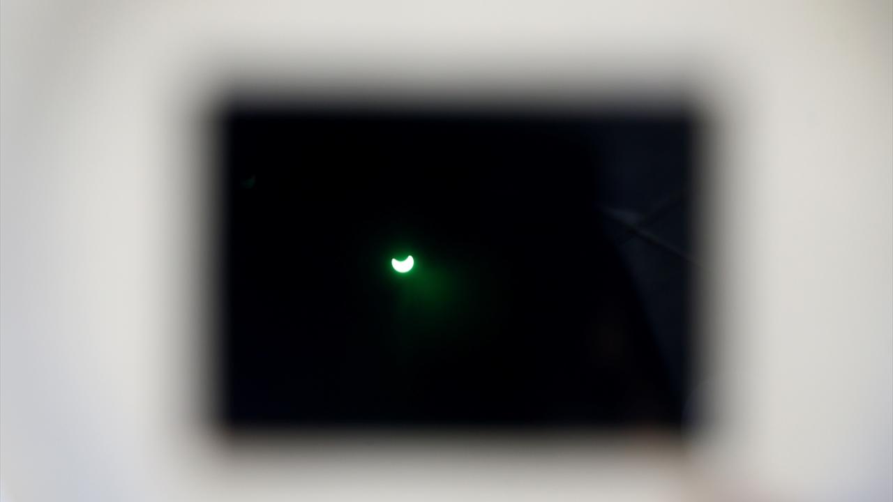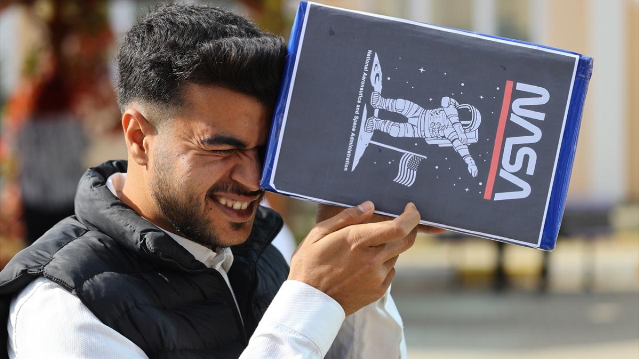 Edirne`de üniversite öğrencileri güneş tutulmasını atık malzemelerden yaptıkları "projektör"le gözlemledi