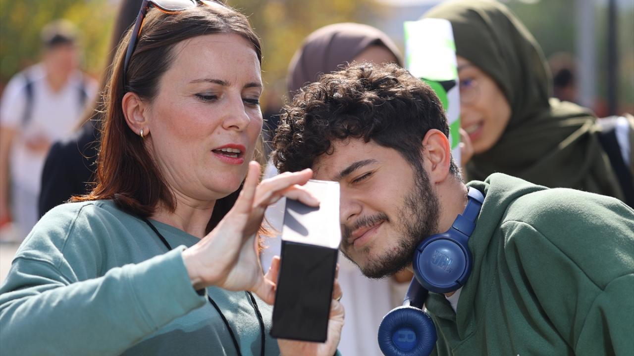 Trakya Üniversitesi Eğitim Fakültesi öğrencileri, güneş tutulmasını izlemek için fakülte bahçesinde toplandı.