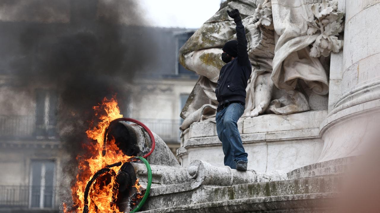 Fransa`nın başkenti Paris`te 1 Mayıs Emek ve Dayanışma Günü etkinliklerinde sokaklar savaş alanına döndü.