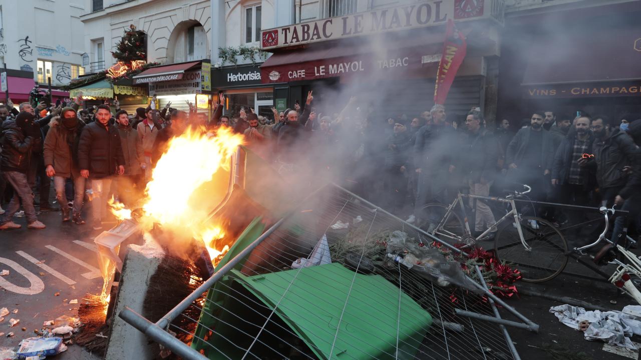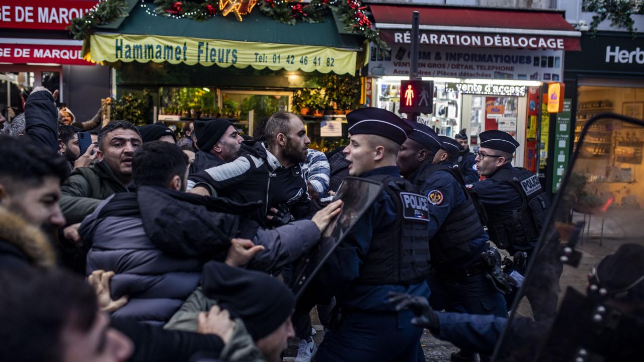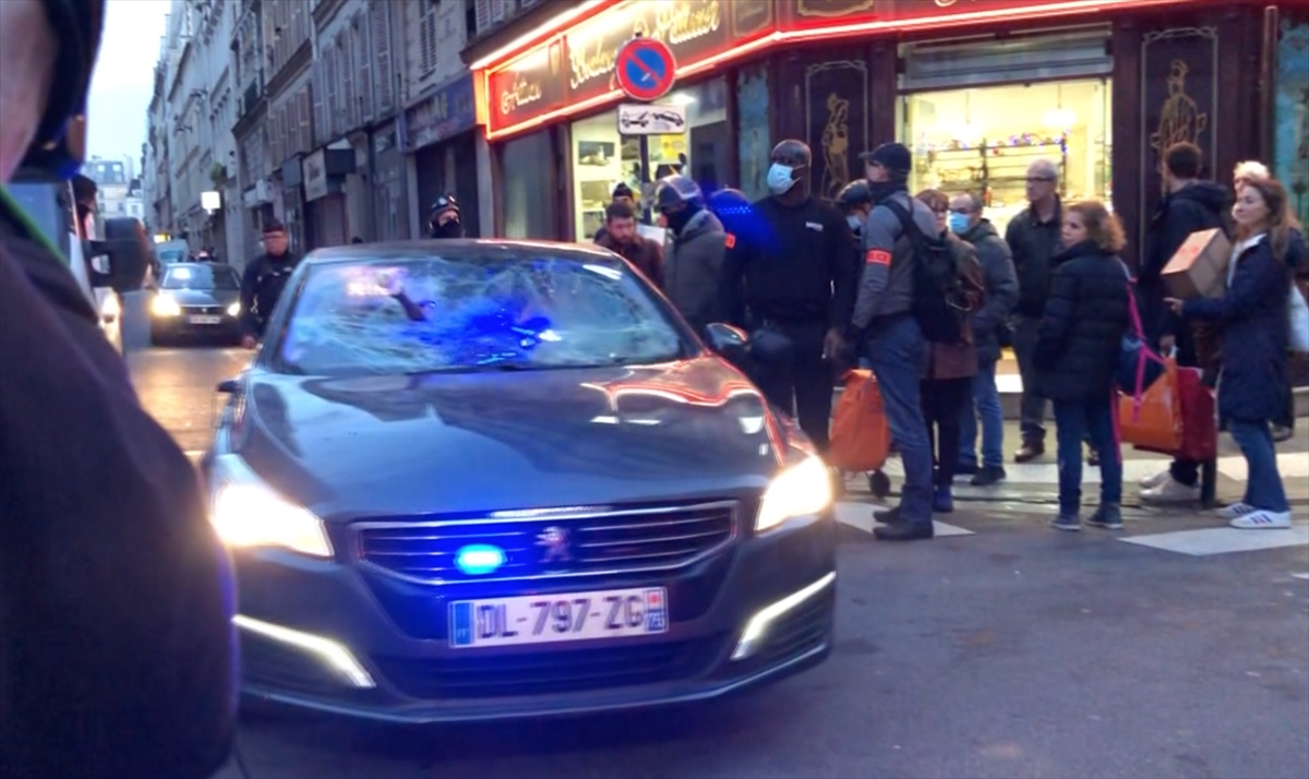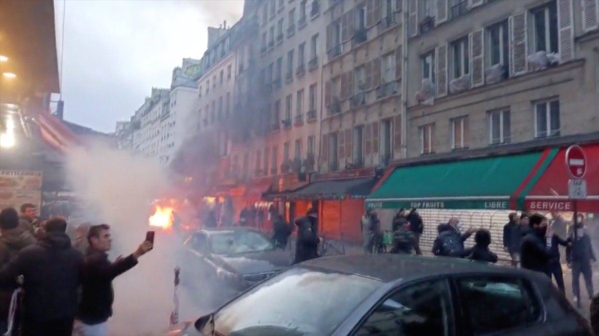 Darmanin`in konuşmasının ardından, terör örgütü PKK yanlısı bir grup, alandaki polislere saldırdı; caddedeki araç ve dükkanlara zarar verdi.