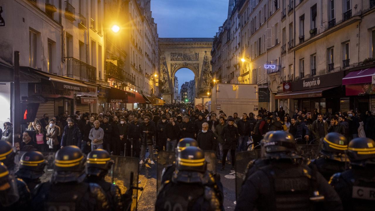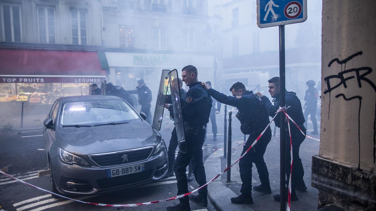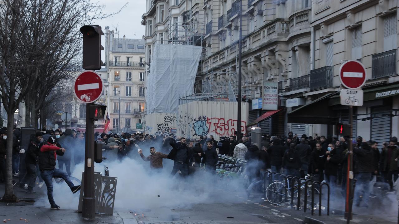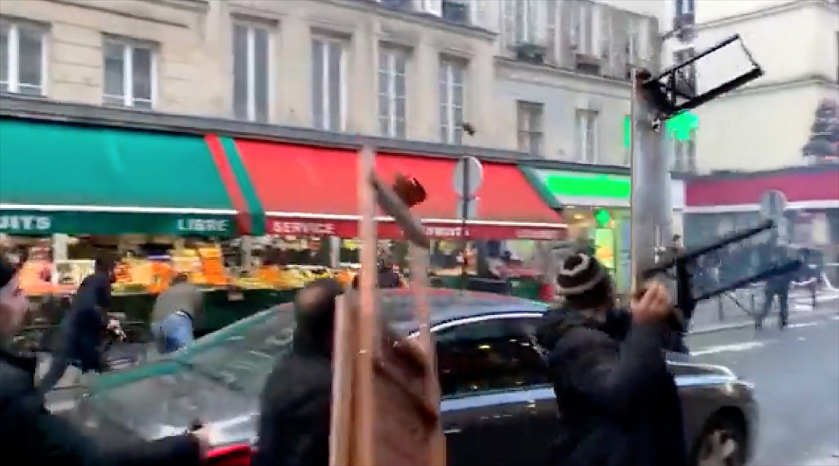 Darmanin`in konuşmasının ardından, terör örgütü PKK yanlısı bir grup, alandaki polislere saldırdı; caddedeki araç ve dükkanlara zarar verdi.