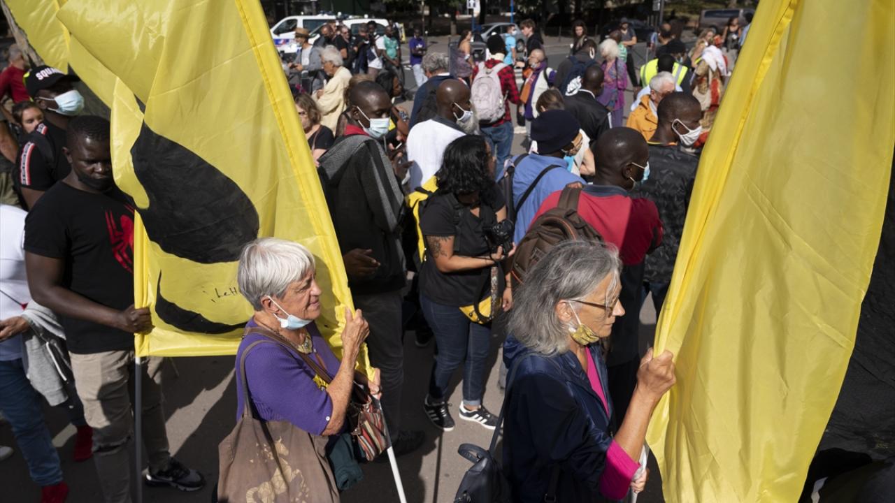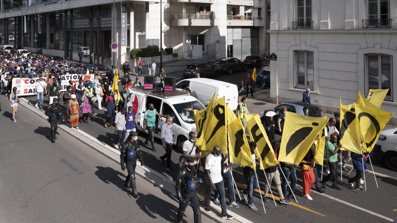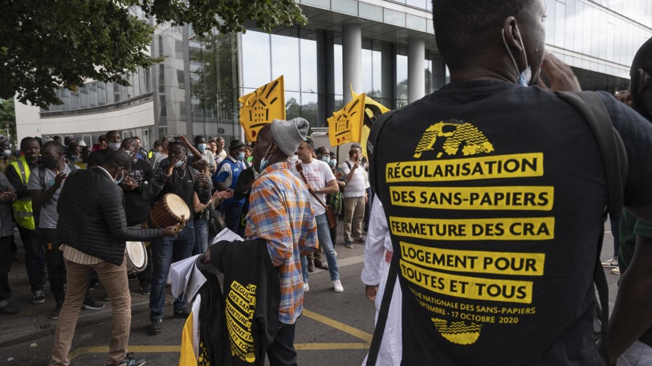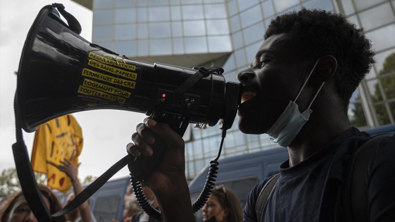 Evsizlere barınma imkanı sağlanması için devletin boş evleri kullanmasını talep eden göstericiler, "Cumhurbaşkanı Emmanuel Macron, belgelerimiz yok, senden almaya geldik", "İçişleri Bakanı Gerard Darmanin, köpek değiliz, yanına bırakmayacağız", "Göçmenler de tehlikeli değil ama tehlikede" sloganları attı.