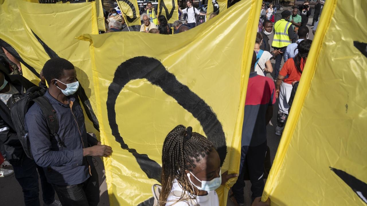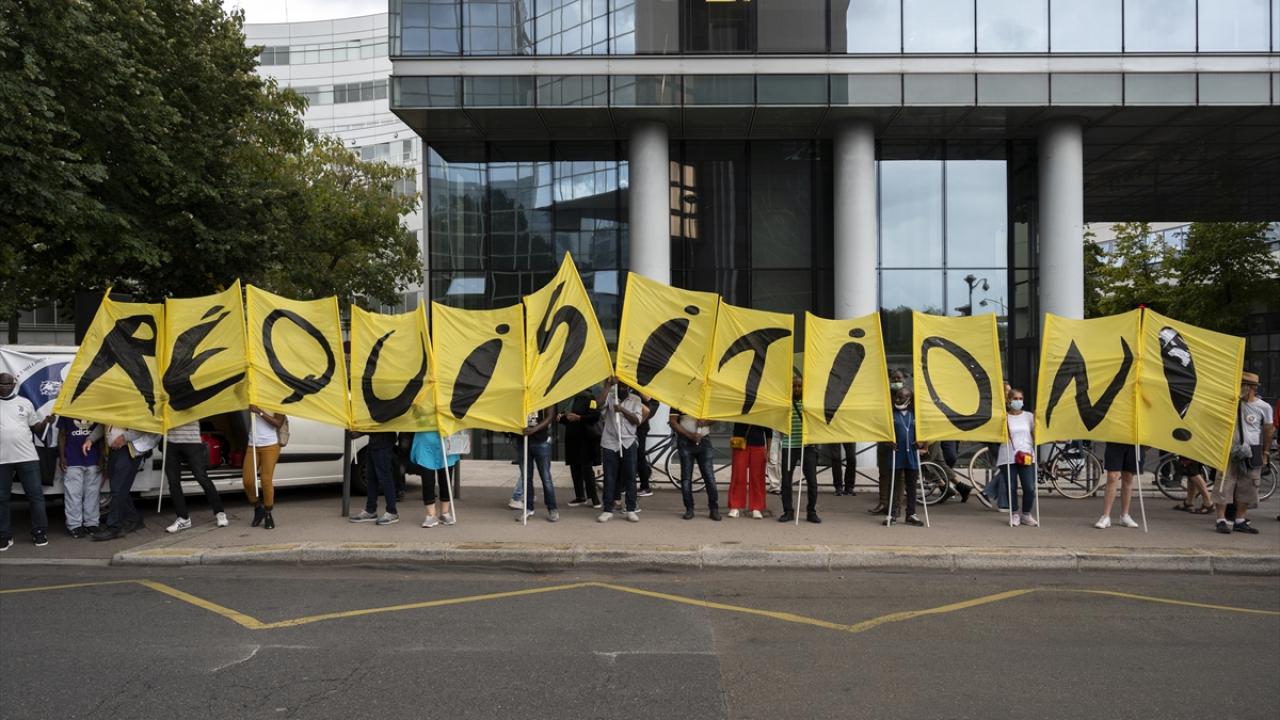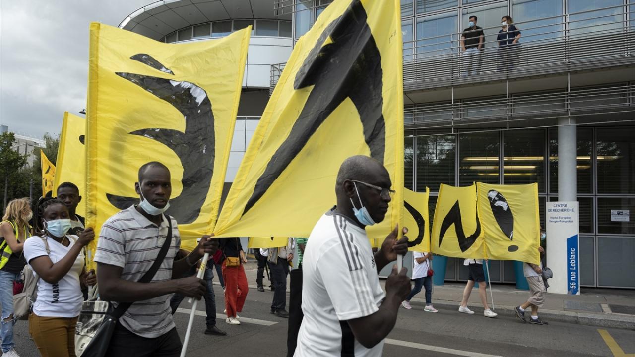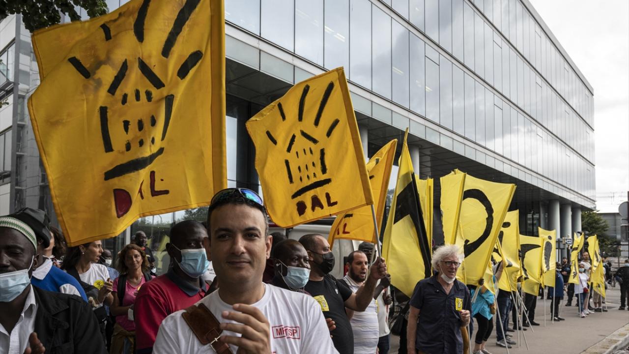 Evsizlere barınma imkanı sağlanması için devletin boş evleri kullanmasını talep eden göstericiler, "Cumhurbaşkanı Emmanuel Macron, belgelerimiz yok, senden almaya geldik", "İçişleri Bakanı Gerard Darmanin, köpek değiliz, yanına bırakmayacağız", "Göçmenler de tehlikeli değil ama tehlikede" sloganları attı.