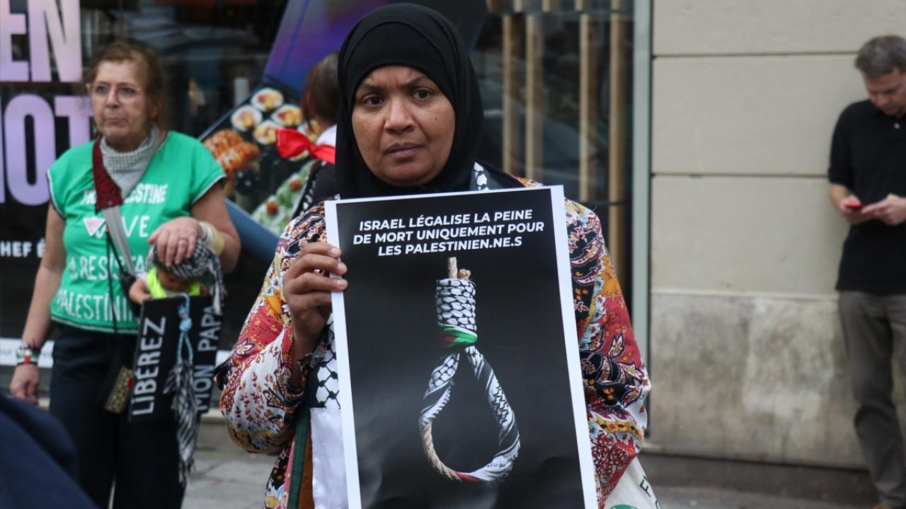 Paris'te İsrail'in Filistinli esirleri hedef alan "idam yasası"na karşı protesto düzenlendi