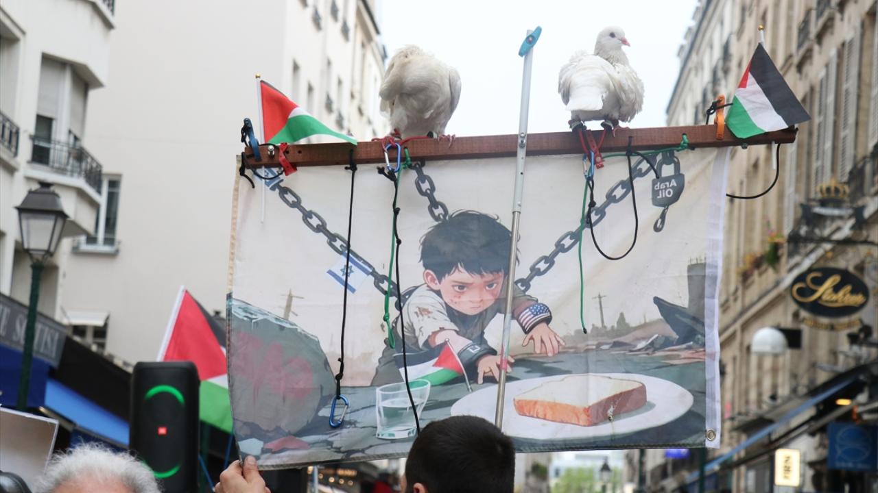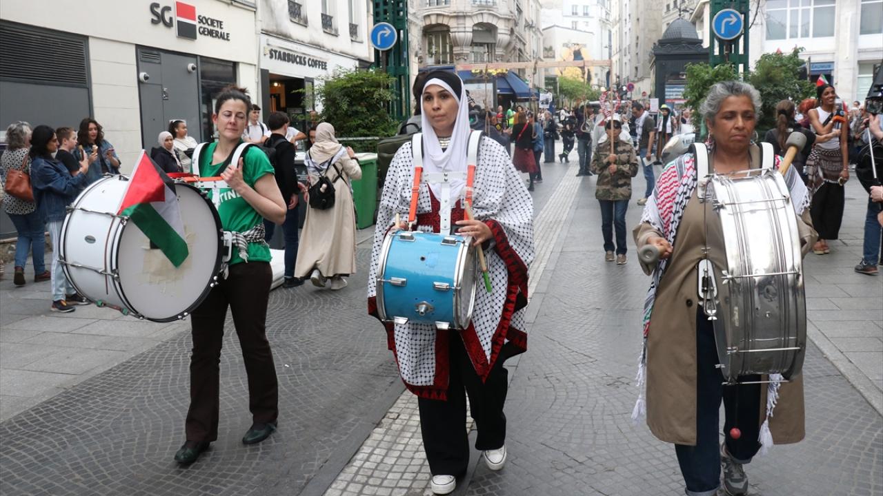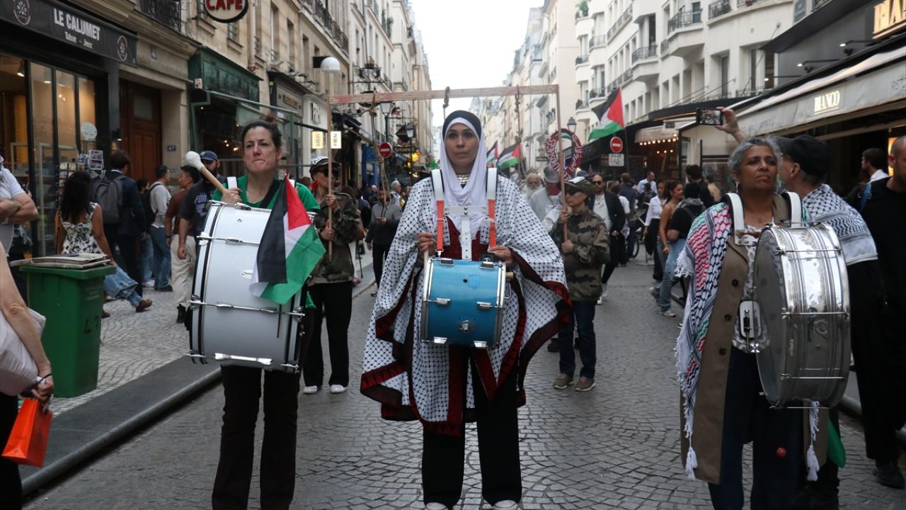 Fransa’nın başkenti Paris’te, CAPJPO-Europalestine tarafından düzenlenen protestoda, göstericiler Filistin bayrakları ve pankartlar eşliğinde şehir merkezinde yürüyüş yaptı.