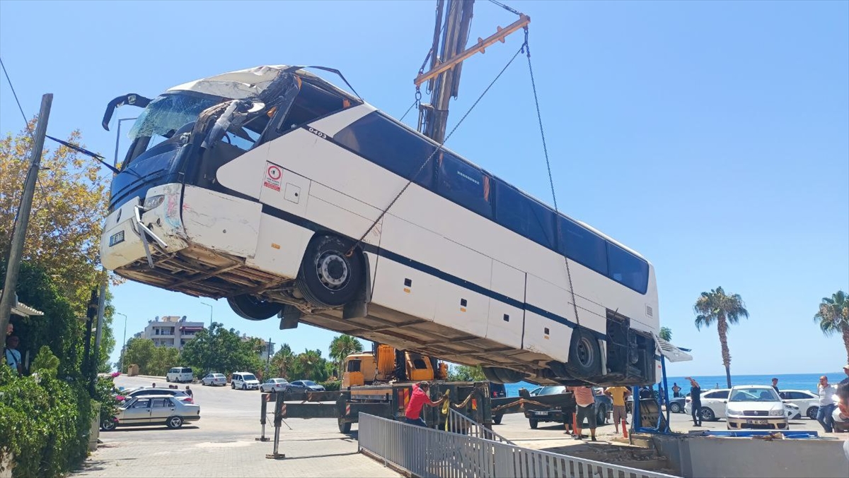 Kimsenin yaralanmadığı kaza sonrası otobüsün kaldırılması için çalışma başlatıldı.