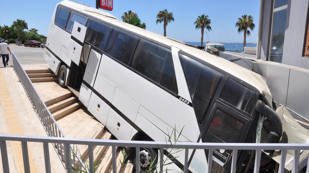 Atakent Mahallesi Harnupaltı mevkisinde park halinde olan 07 AET 713 plakalı otobüs, freni arızalanınca hareket etti. Eğim nedeniyle hızlanıp park halindeki 06 BAG 523 plakalı otomobile çarpan otobüs, yol kenarındaki merdivenlerden düşerek zincir marketin şubesine girdi.