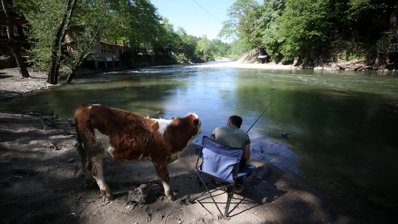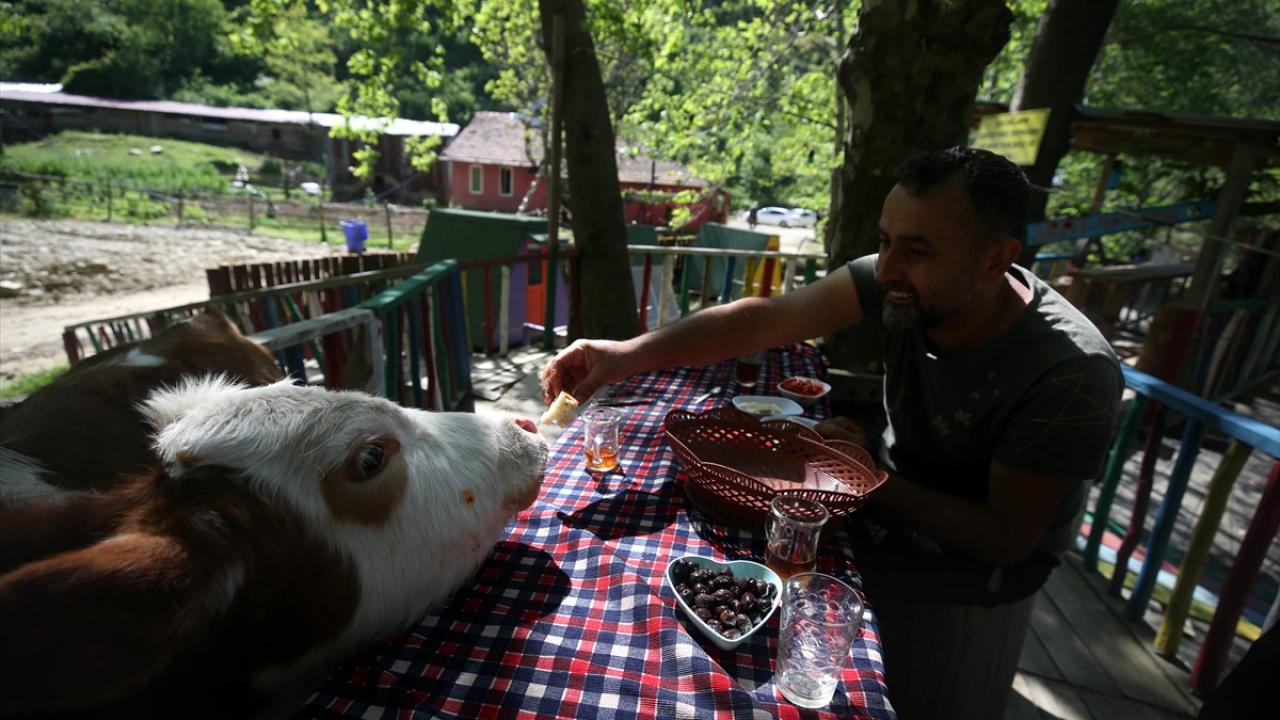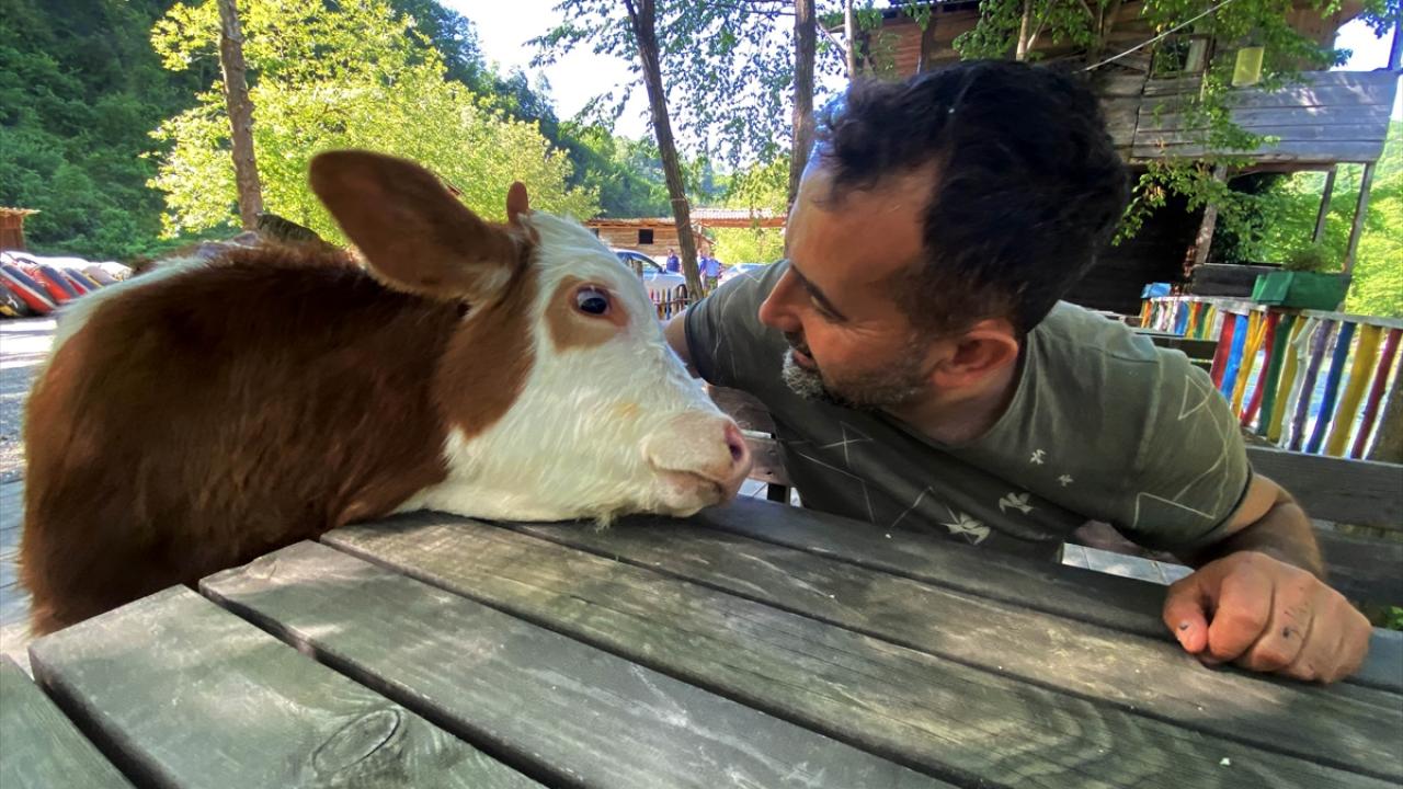 Düzce'nin Cumayeri ilçesinde turizm işletmeciliği yapan Davut Pirdal'ın 4 ay önce dünyaya gelen "Paşa" isimli buzağısı tesisin maskotu haline geldi.