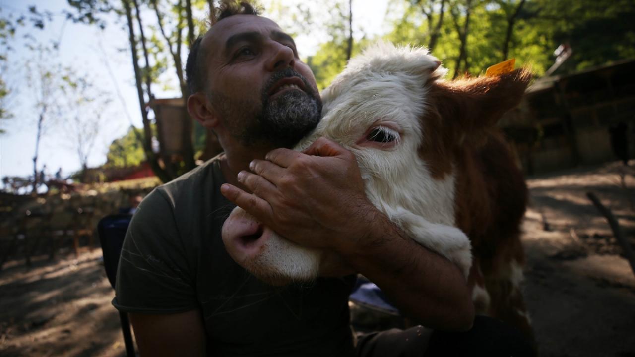 Burada turizm işletmeciliği yanında büyükbaş hayvancılıkla da uğraşan Pirdal`ın ineği yaklaşık 4 ay önce buzağı dünyaya getirdi.
