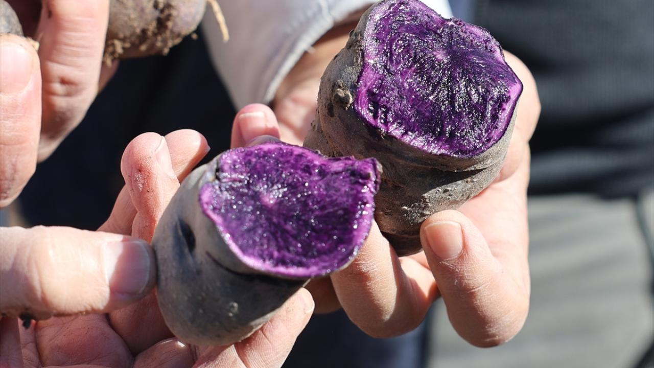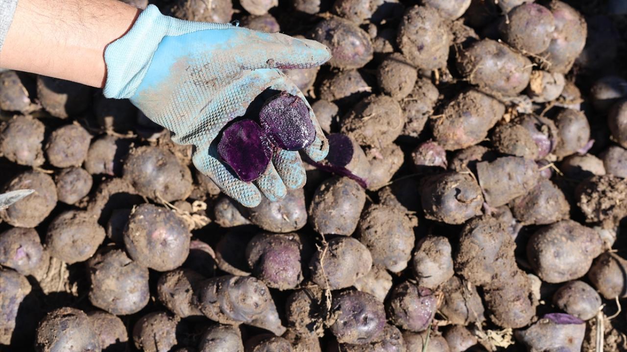 Karbonhidrat, potasyum, C vitamini, folik asit ve demir kaynağı olan mor patatesin ilk hasadı tamamlandı.