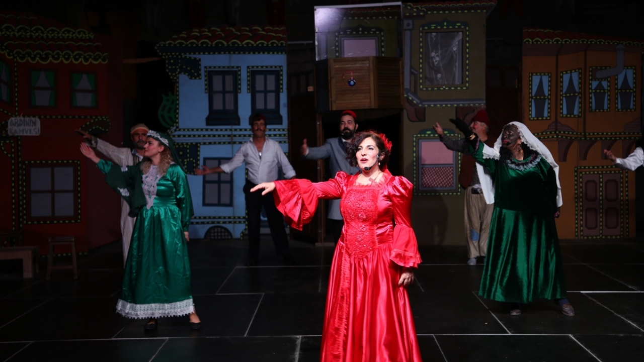 Yeni tip koronavirüs (Covid-19) tedbirleri kapsamında ateş ölçümü yapılarak ve maske takma zorunluluğuyla salona alınan davetliler, Yeşilköy Halk Tiyatrosunun çeşitli meslek grubundan oyuncularının, Kaş Belediyesinin desteğiyle sahnelediği "Kanlı Nigar"ı izledi.