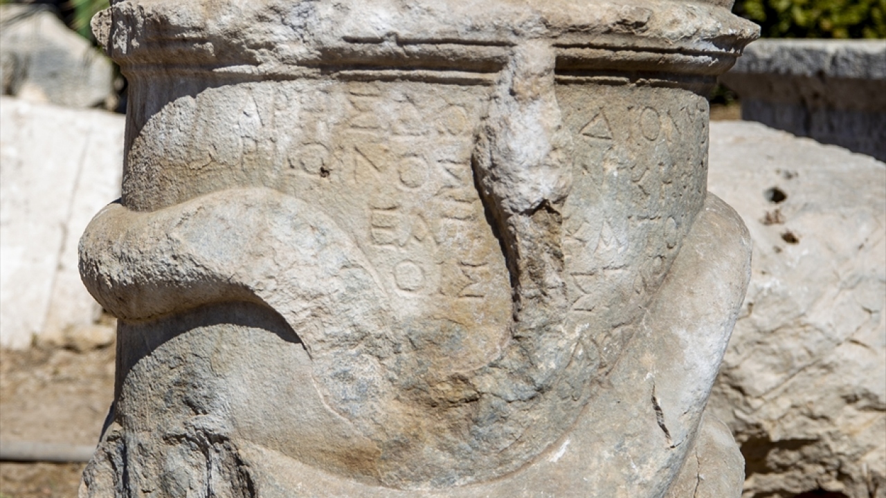 Antalya'nın Kaş ilçesindeki Patara Antik Kenti'nde yapılan kazı çalışmalarında yılan figürlü 'sunak' bulundu.