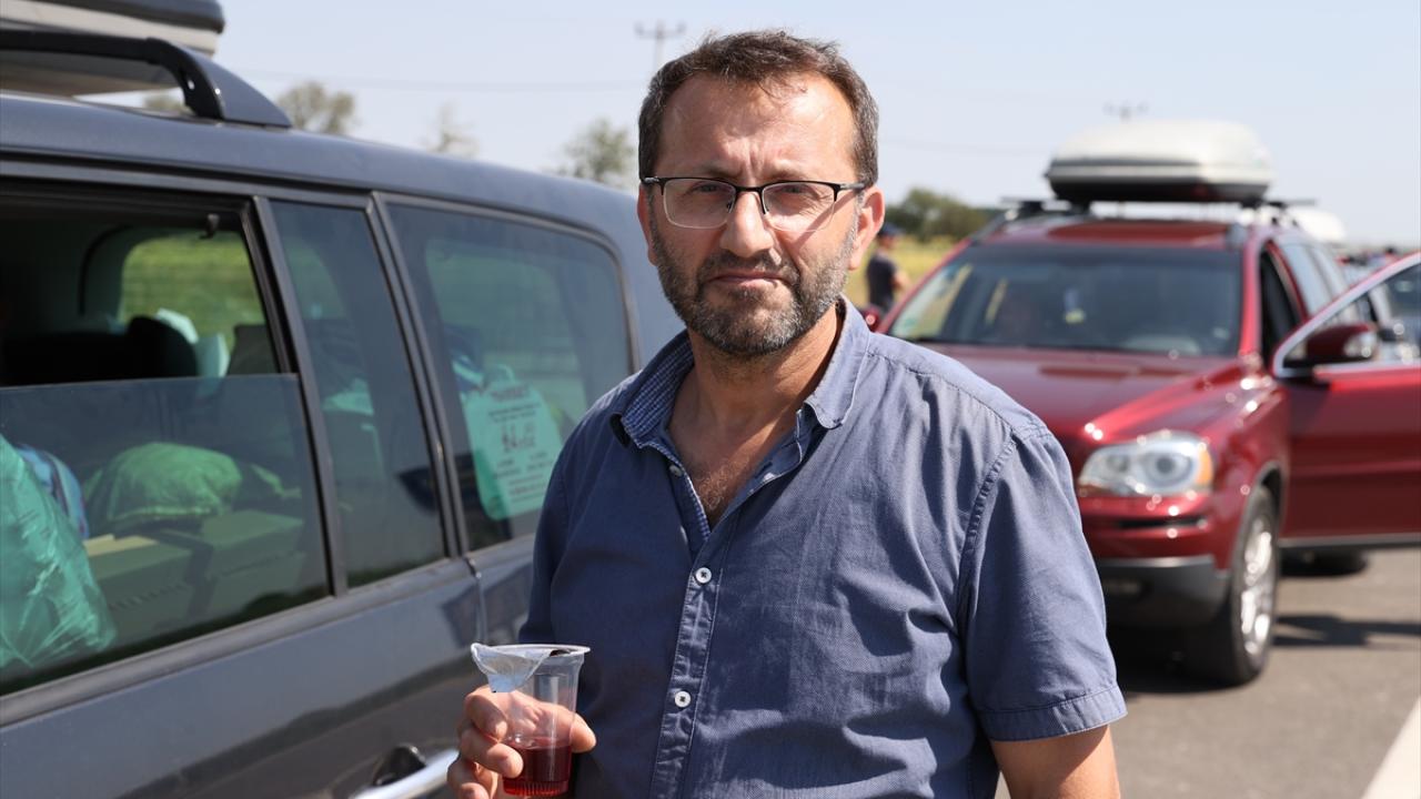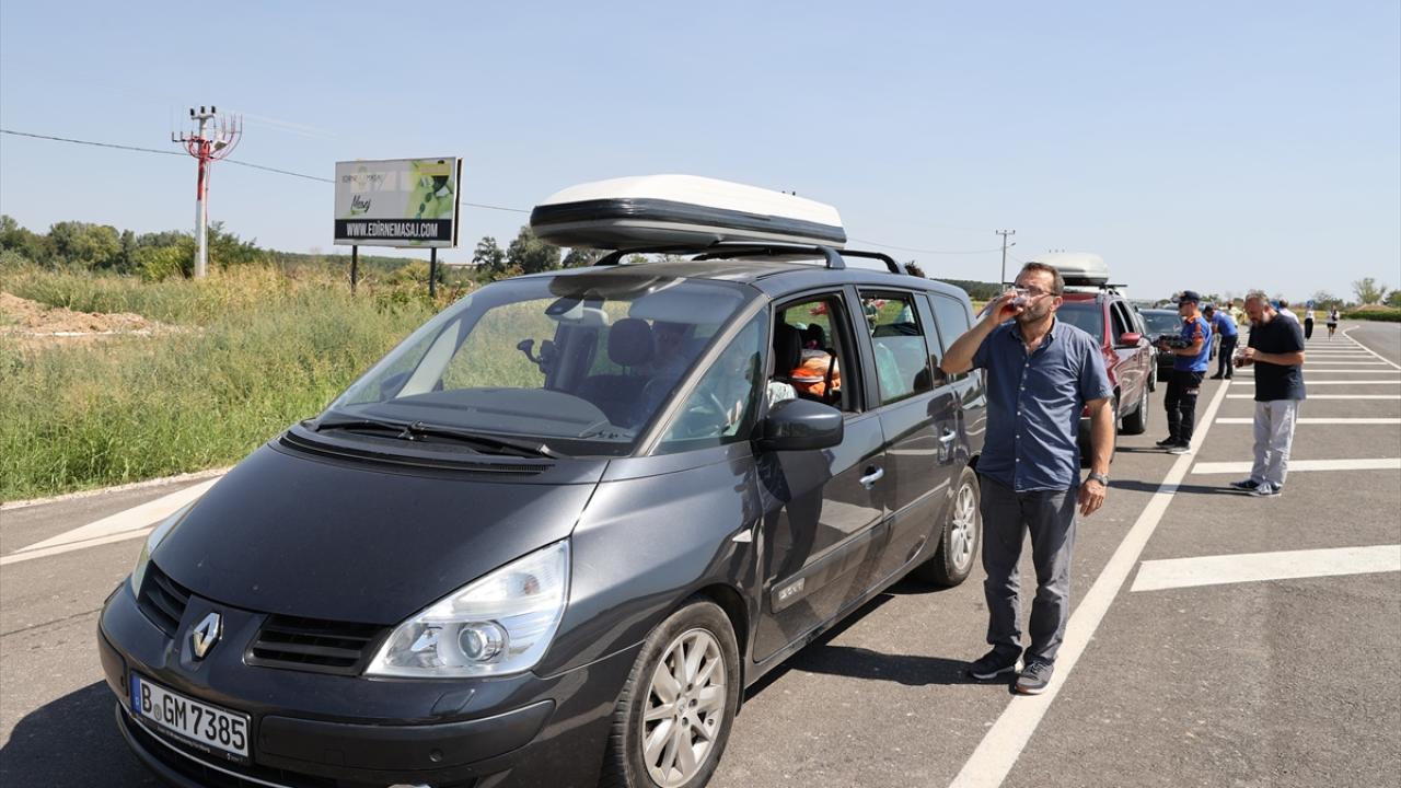AFAD ekipleri de hava sıcaklığının 36 derece ölçüldüğü kentte, sınır kapısında araçlarının içerisinde işlemlerinin yapılmasını bekleyenlere şerbet ve su dağıttı.