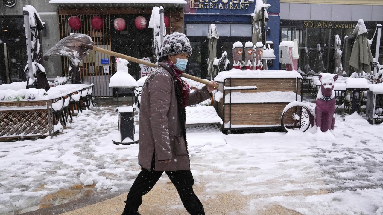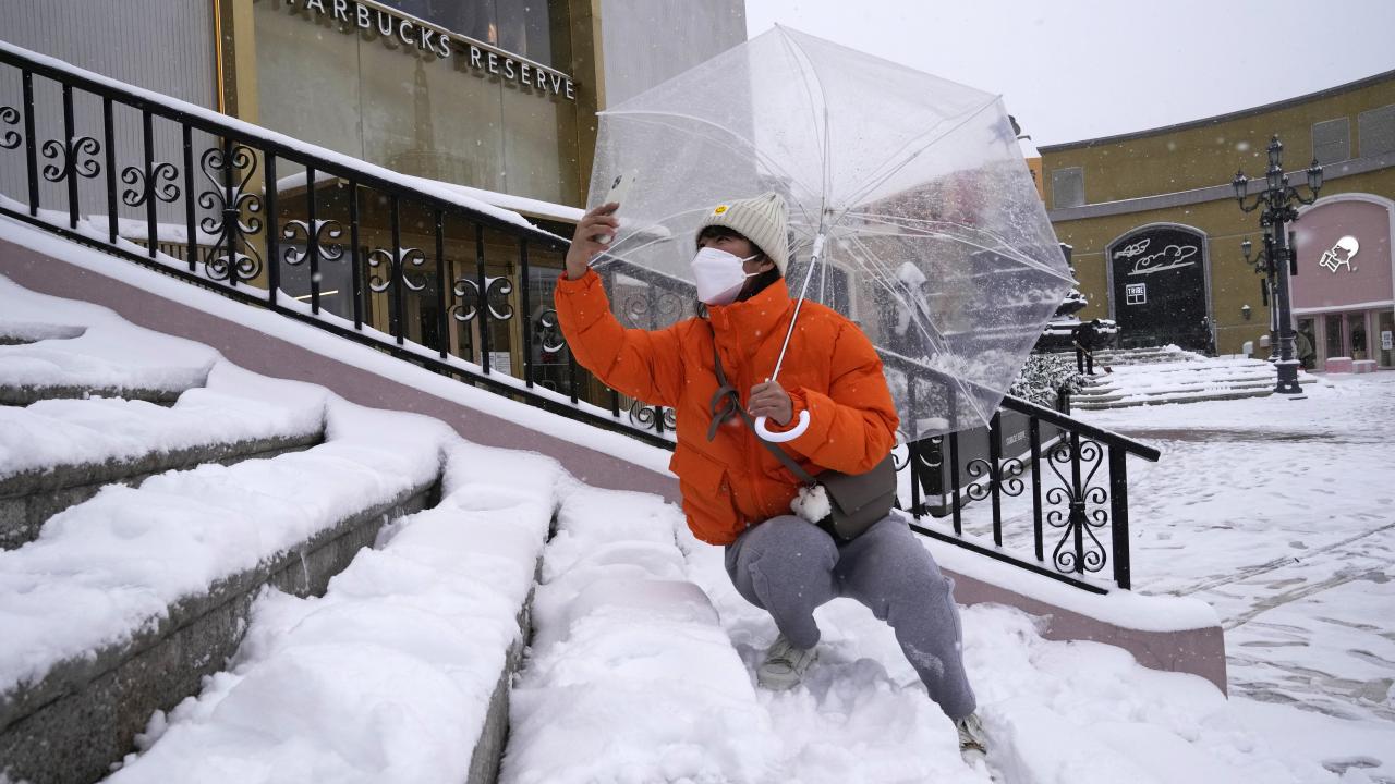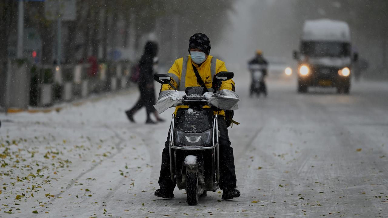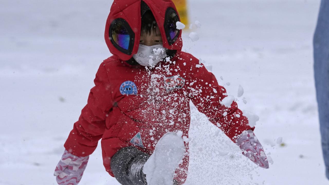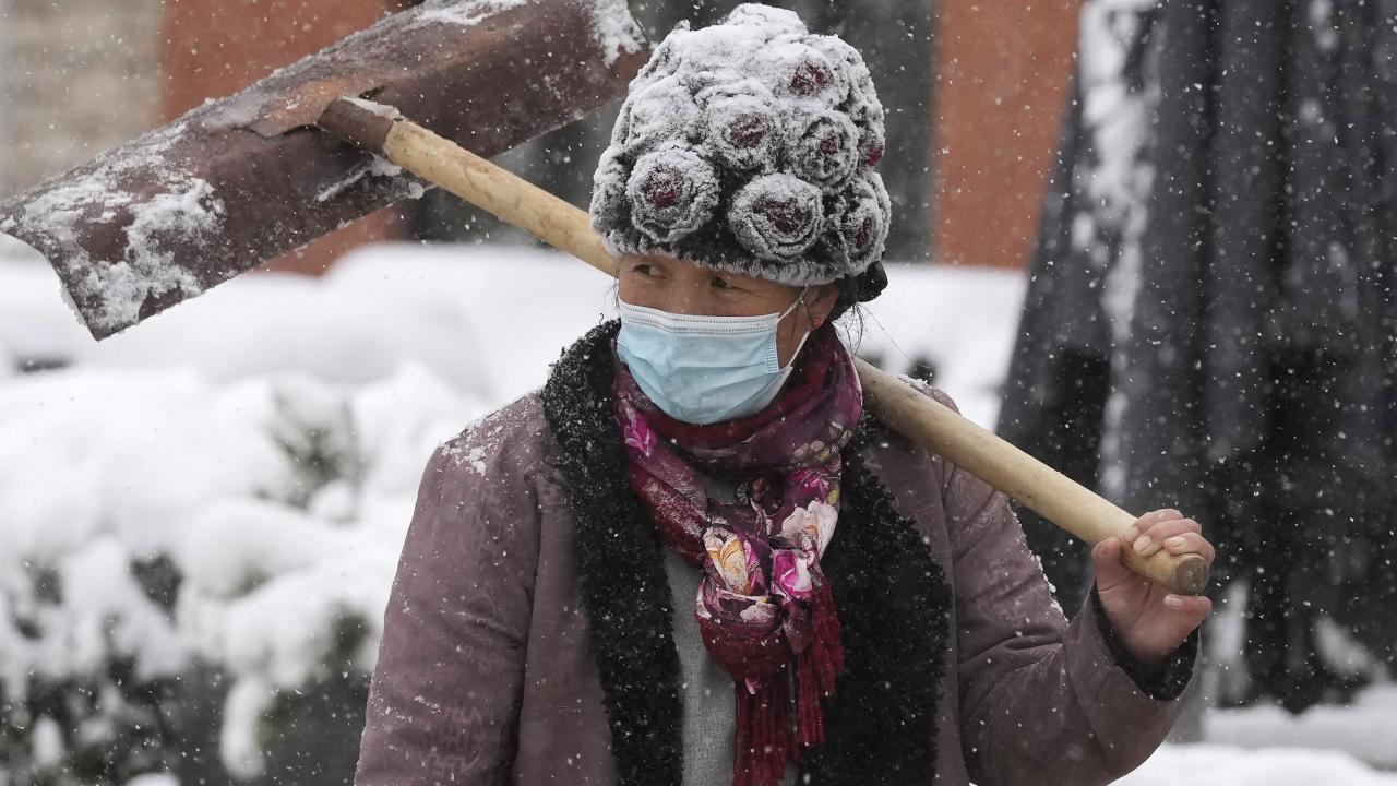 Geleneksel Çin ay takviminde bir terim olan "kışın başlangıcı" ile aynı zamana denk gelen pazar gününde de kar yağışı devam ediyor.