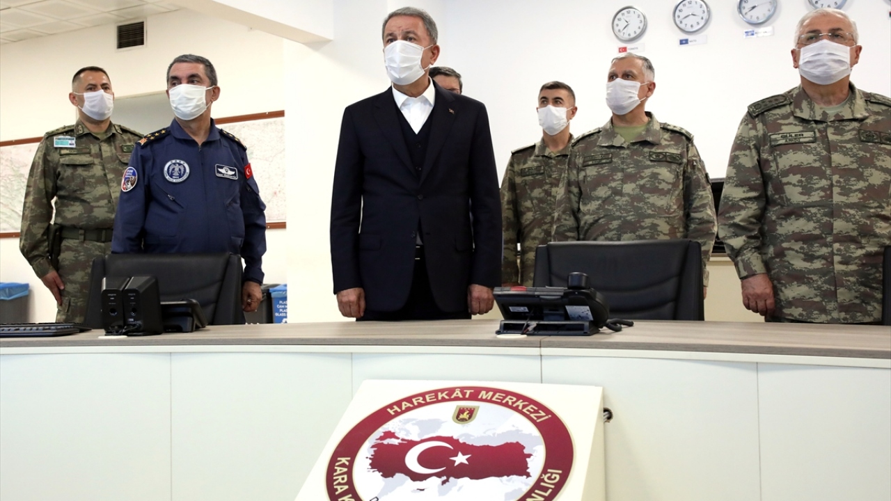 Akar, beraberinde Genelkurmay Başkanı Orgeneral Yaşar Güler, Kara Kuvvetleri Komutanı Orgeneral Ümit Dündar, Hava Kuvvetleri Komutanı Orgeneral Hasan Küçükakyüz ile Deniz Kuvvetleri Komutanı Oramiral Adnan Özbal ile geldiği Kara Kuvvetleri Komutanlığı Harekat Merkezi’nde sahadaki son duruma ilişkin brifing aldı. Video konferans yöntemi ile harekata katılan birlik komutanları ile görüşen Akar ve komutanlar, sahadaki durumu da gece boyunca yakından takip etti, talimatlar verdi.