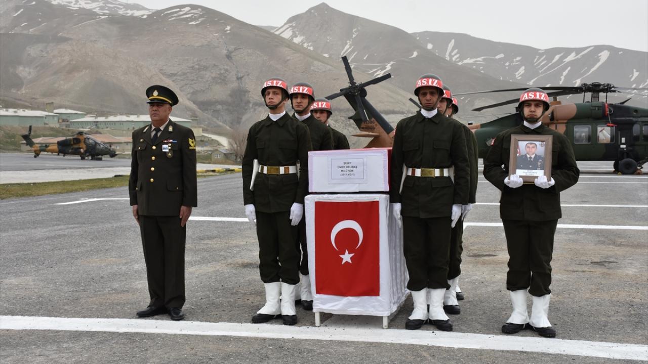 Pençe-Kilit Operasyonu bölgesinde el yapımı patlayıcının infilak etmesi sonucu yaralanan ve kaldırıldığı hastanede şehit olan Muhabere Üsteğmen Ömer Delibaş için Hakkari'de tören düzenlendi.