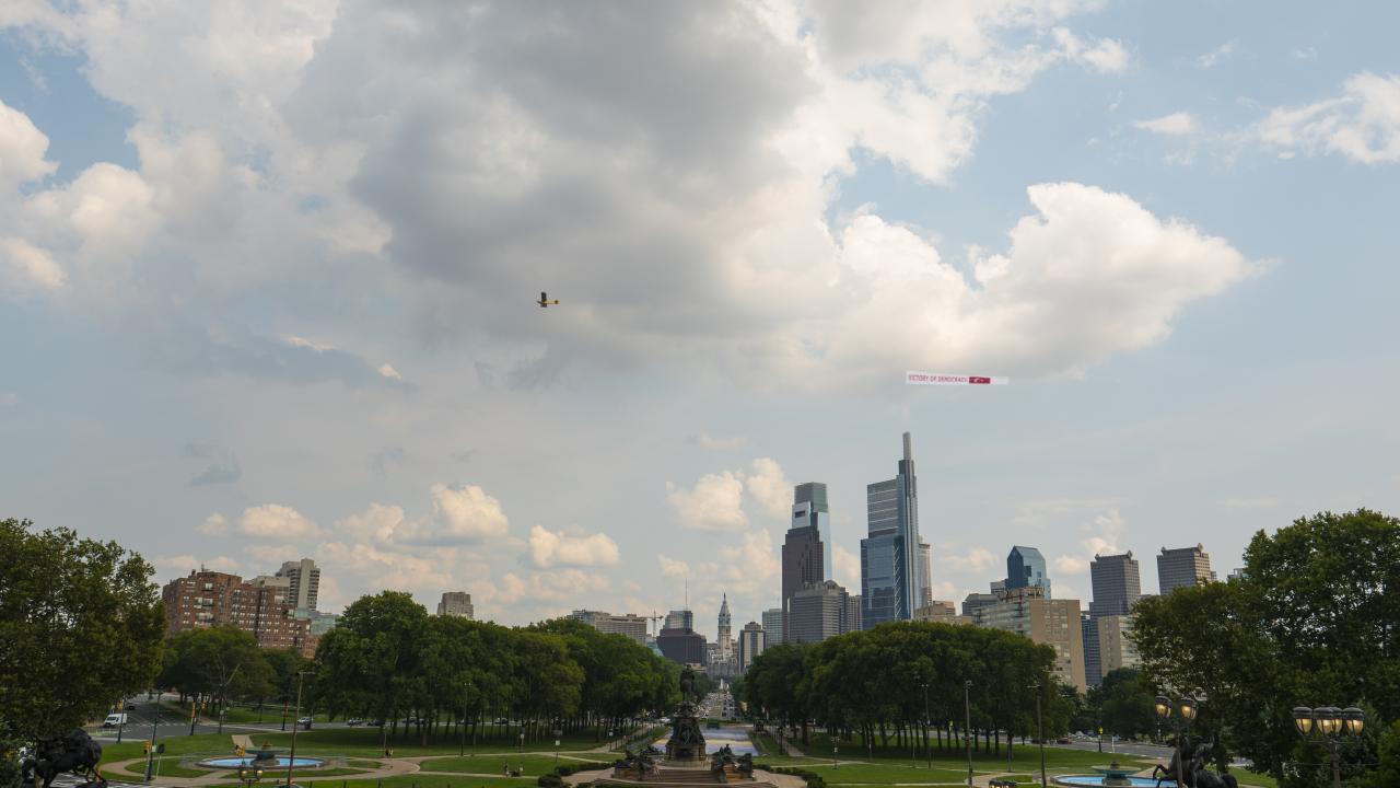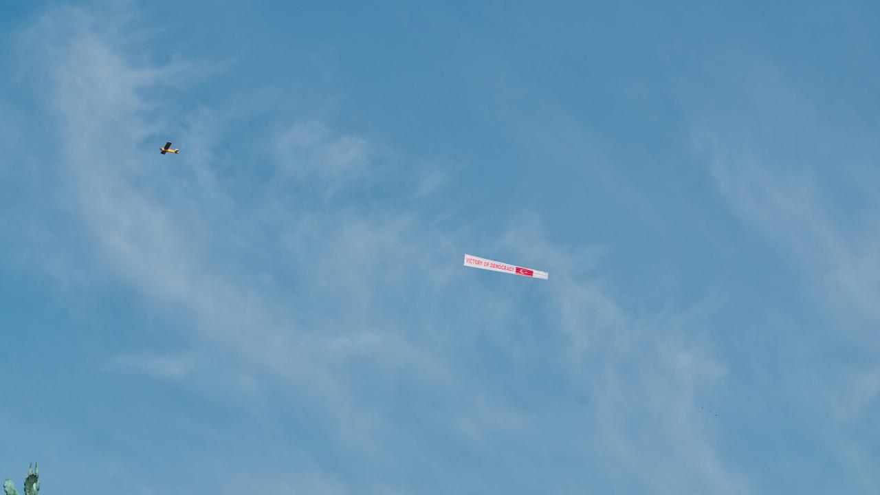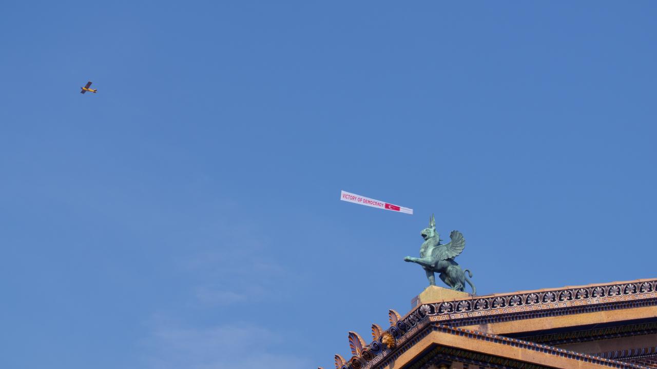 Pensilvanya'da 'Demokrasi Zaferi' afişi taşıyan uçak uçuruldu