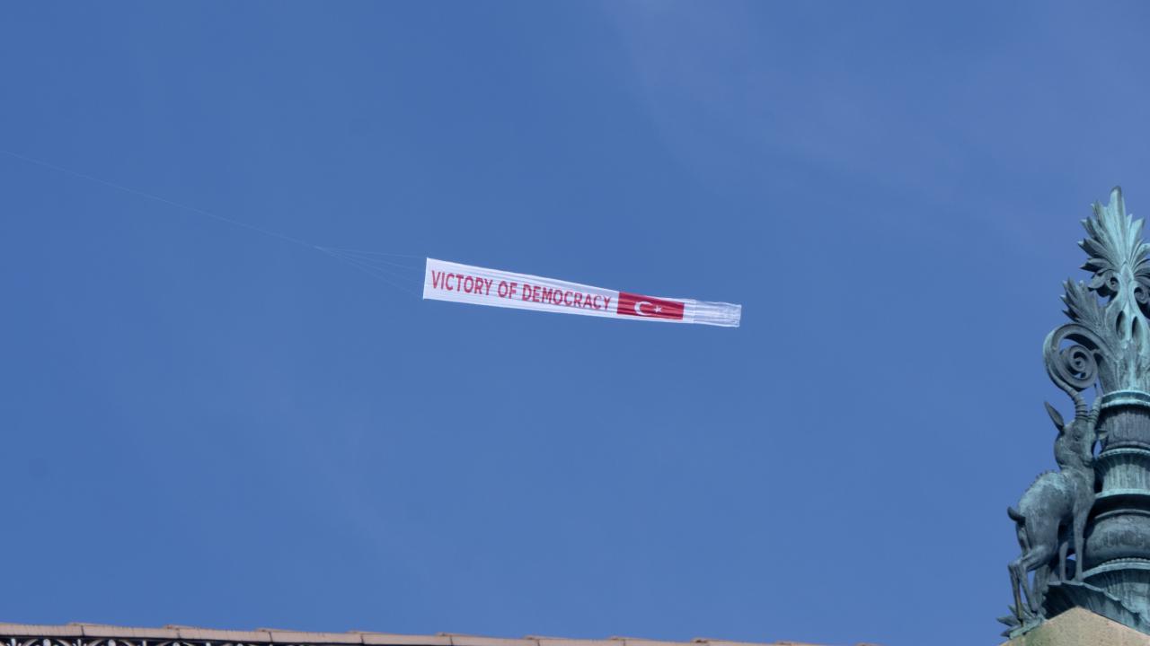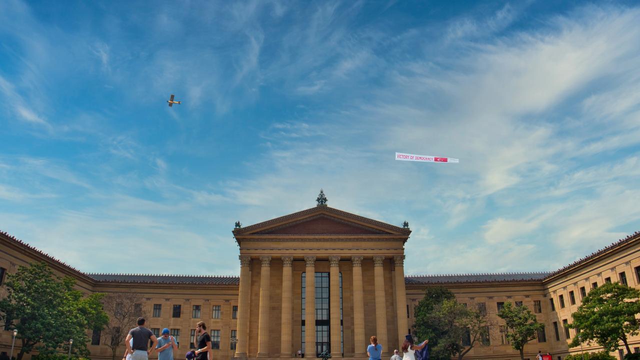 15 Temmuz darbe girişiminin yıl dönümünde Fetullahçı Terör Örgütü'nün (FETÖ) elebaşı Fetullah Gülen'in yaşadığı ABD'nin Pensilvanya eyaletine bağlı Philadelphia şehri üzerinde, "Victory of Democracy" (Demokrasi Zaferi) afişi taşıyan uçak uçuruldu.