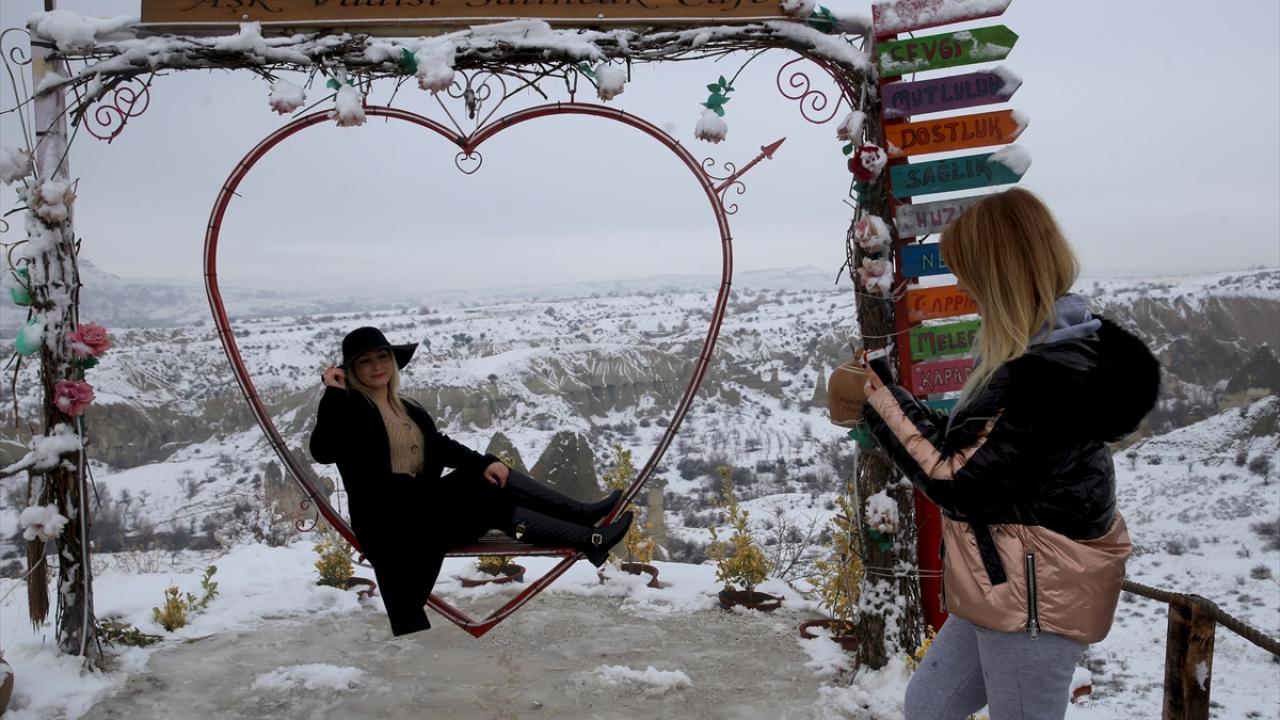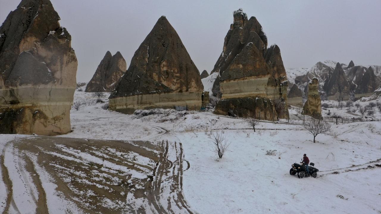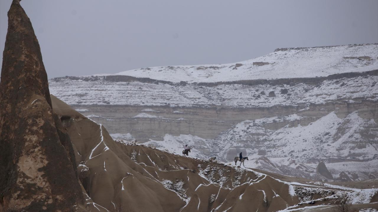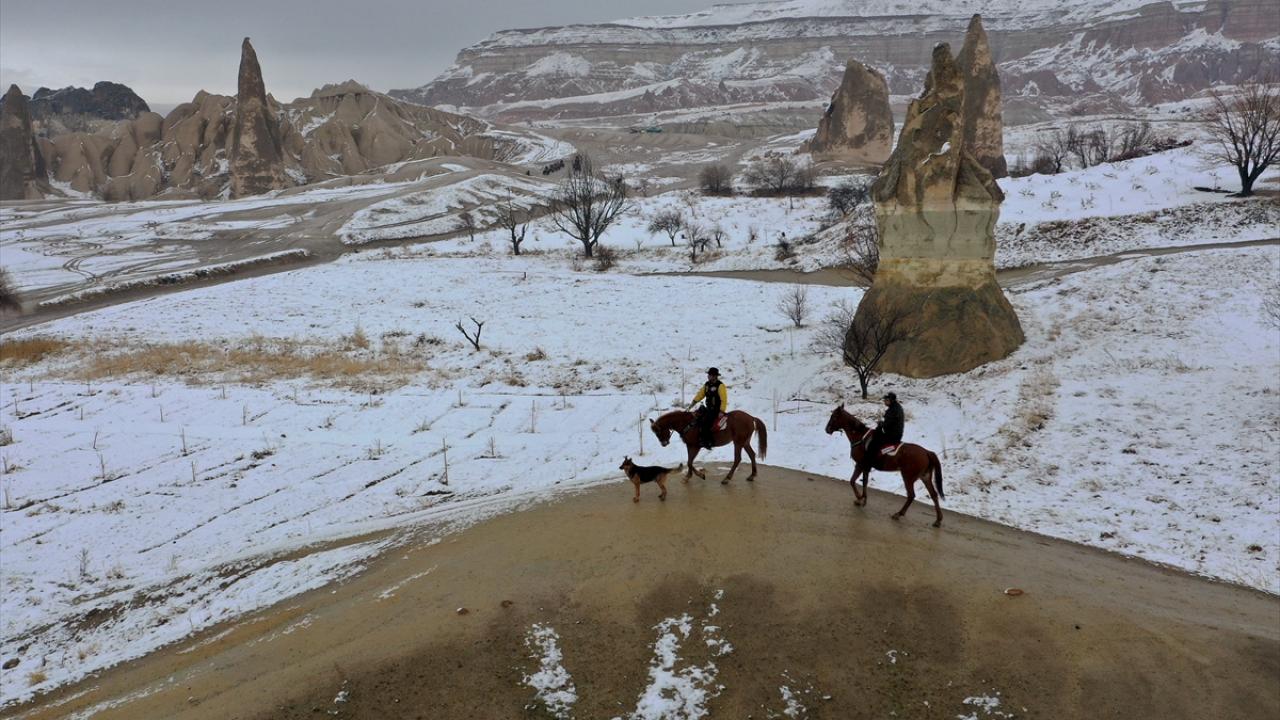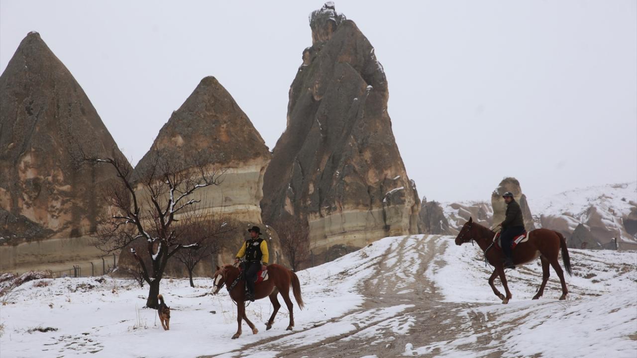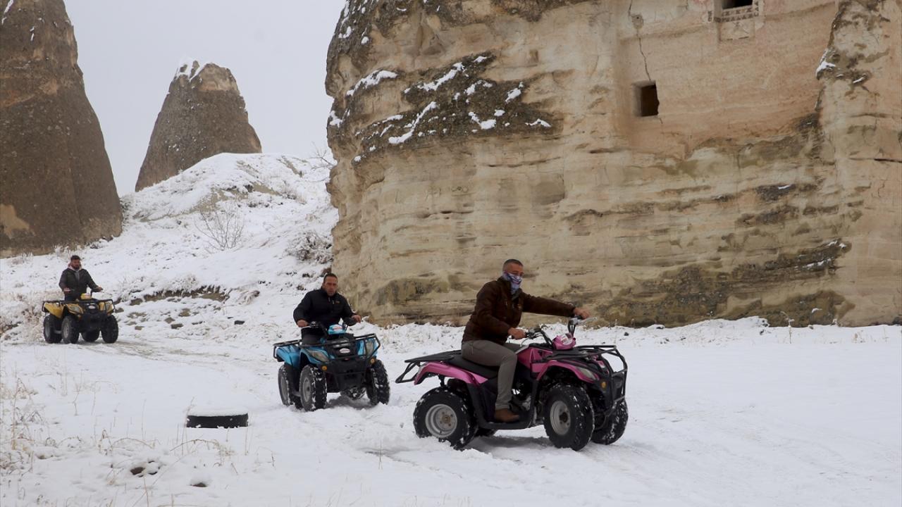 Her mevsim farklı manzaraya bürünerek konuklarına masalsı bir tatil imkanı sunan Kapadokya'da, kış aylarında devam eden aktiviteler turistlere keyifli anlar yaşatıyor.