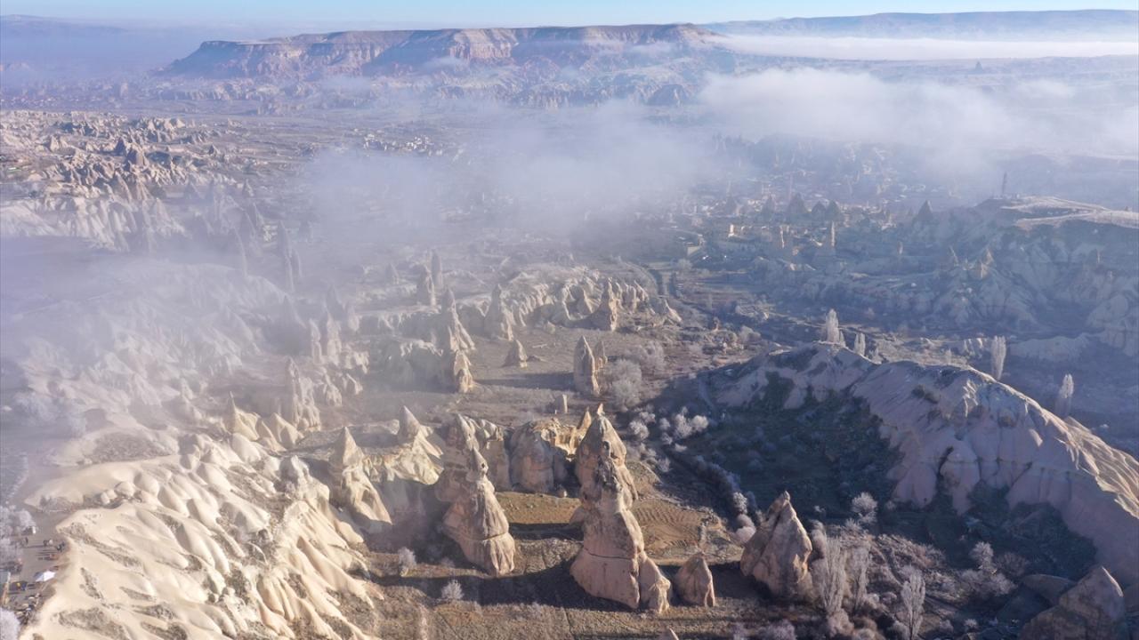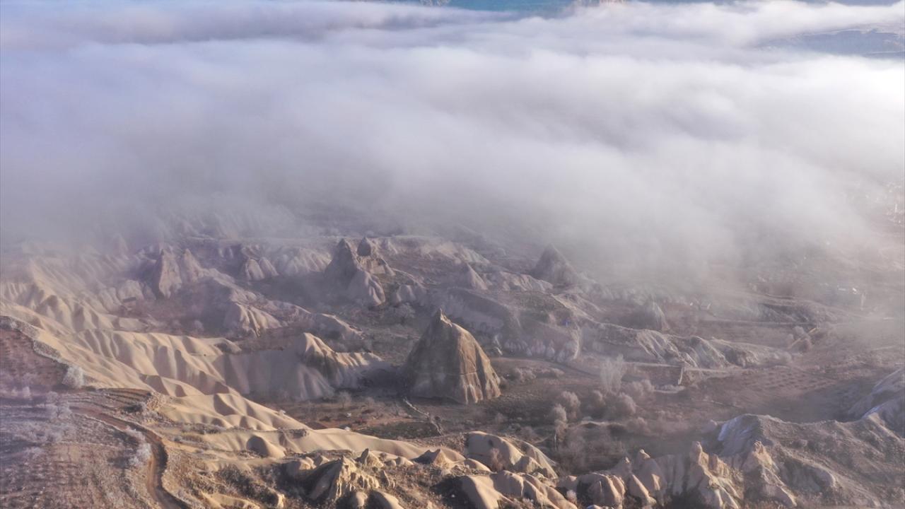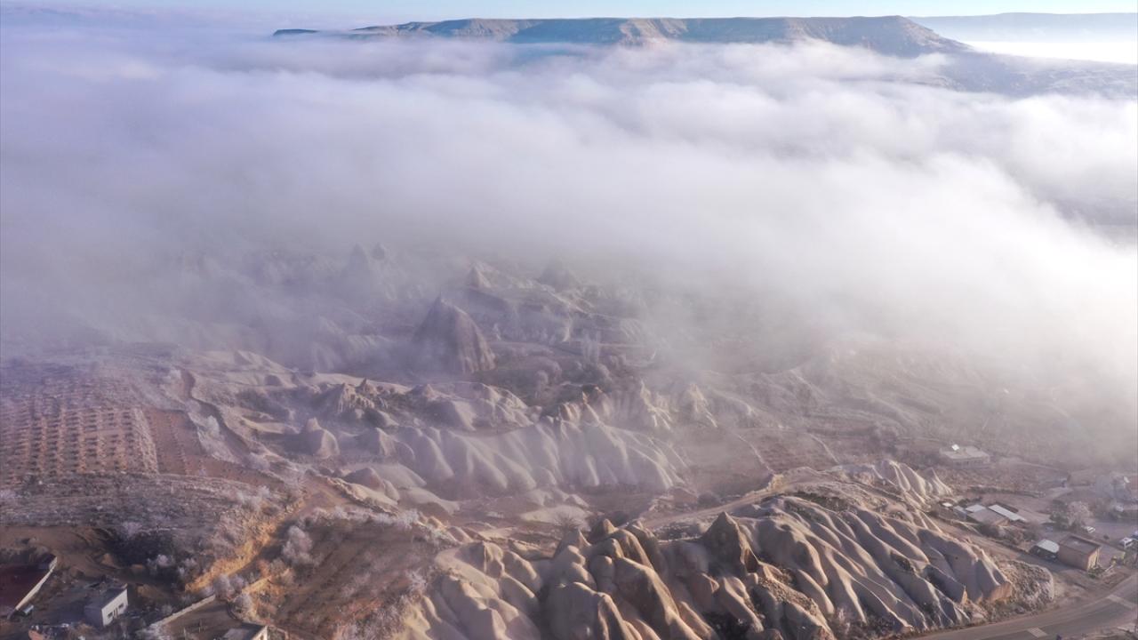 Sis tabakası, yanardağların püskürttüğü lavlardan oluşan tüf kayaların milyonlarca yıl aşınmasıyla ortaya çıkan peribacalarıyla kaplı vadilerin içini sardı.