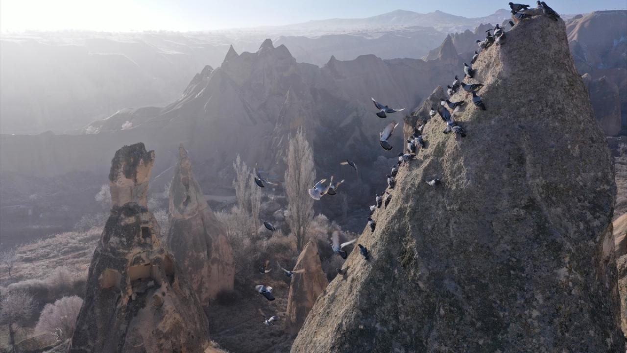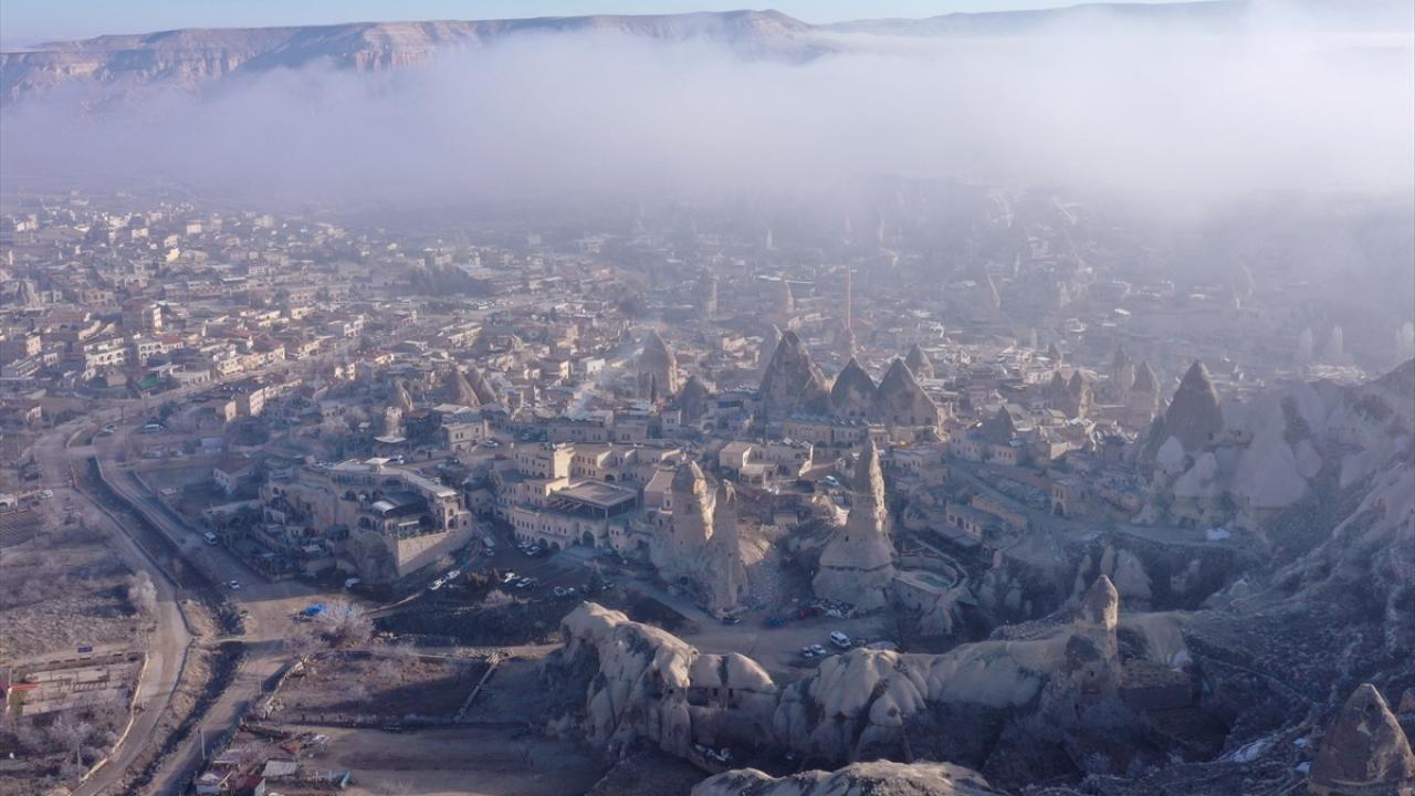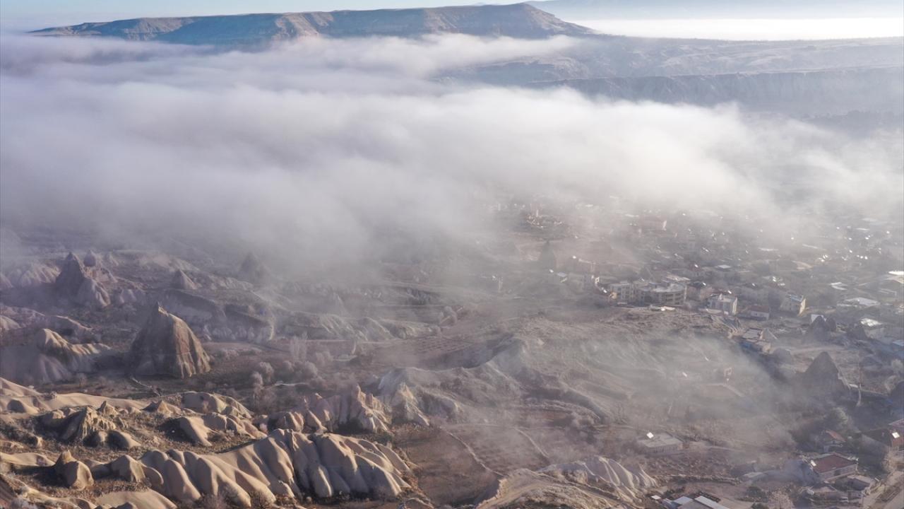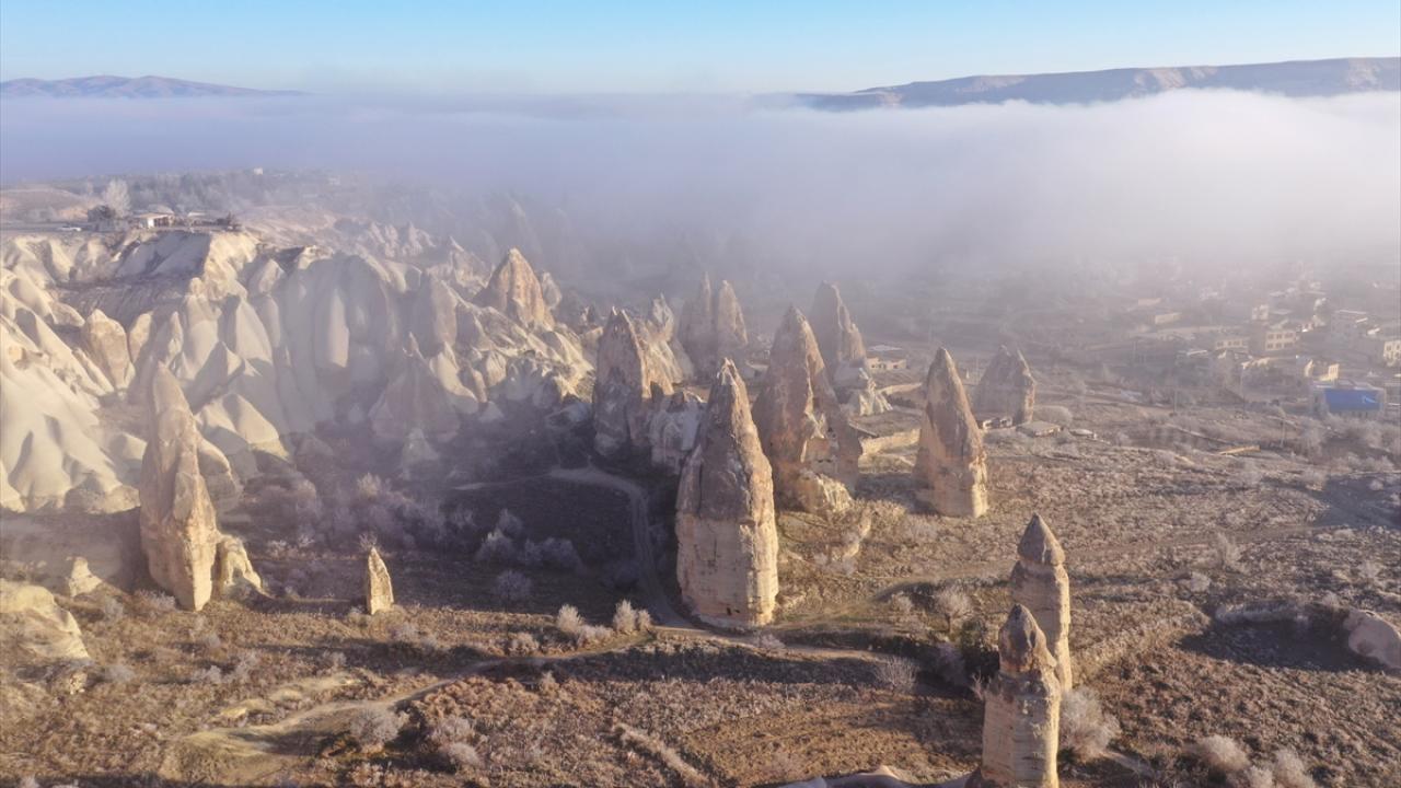 Sis tabakası, yanardağların püskürttüğü lavlardan oluşan tüf kayaların milyonlarca yıl aşınmasıyla ortaya çıkan peribacalarıyla kaplı vadilerin içini sardı.