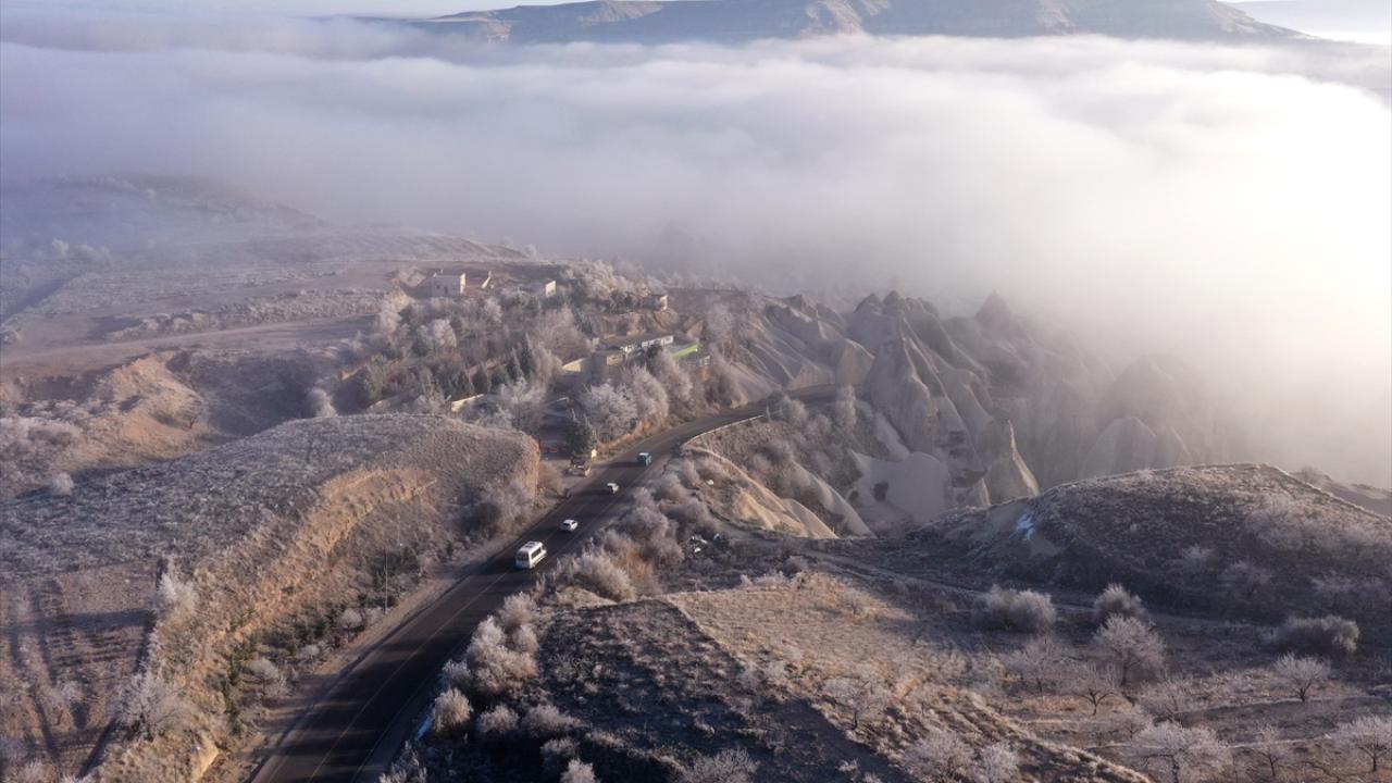 Hava sıcaklığının sabah saatlerinde sıfırın altında 6 dereceye düştüğü bölgede güneşin yüzünü göstermesiyle sis bulutları dağıldı.