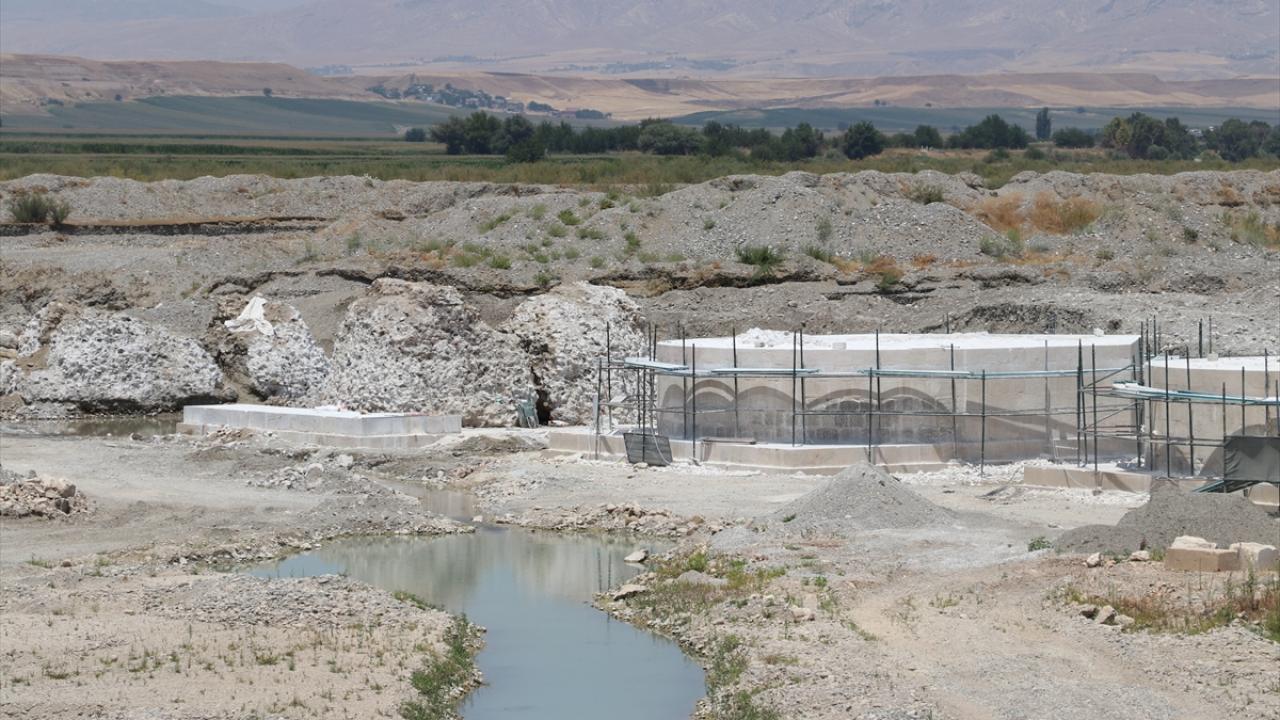 Sadece 10 ayağı su üstünde kalan köprüde kazı çalışmaları ile daha fazla ayak gün yüzüne çıkarıldı.