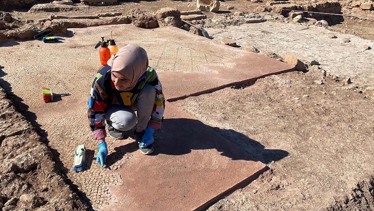 Kazı çalışmalarının kendilerini heyecanlandırdığını ifade eden Alkan, "Bu mozaik taban siyah, beyaz ve mavi parçalarla oluşturulmuş. Taban mozaiği üzerinde ise ağ motifi bulunmakta. Hemen yan tarafında ise tuğlalarla yapılmış bir taban ve 4 girişi bulunuyor. Kazılarda çok ciddi sürprizler ile karşılaşıyoruz." sözlerine yer verdi.